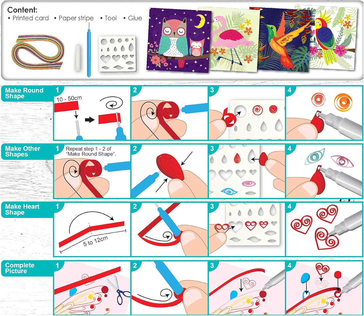 C.S.KIDS PQ03 C.S DIY Arts & Crafts Gifts – Bird| 3D Quilling Design Kits for Kids, Make Art (Paper Strips & Tools Included)