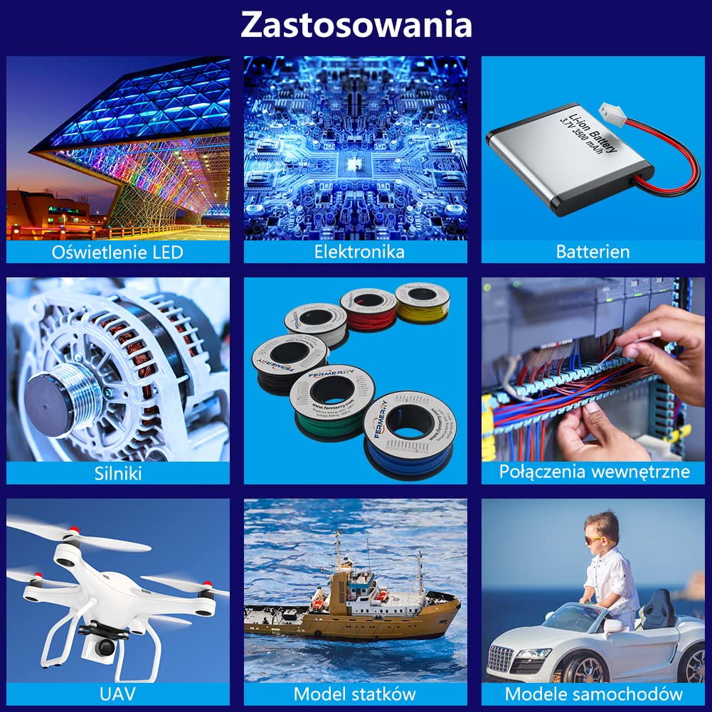 - Application-Fermerry silicone wires are widely used in LED lighting, electrical and electrical equipment, aluminum batteries, RC batteries, model wiringz harnesses, instrumentation internal connections, large transformers and motors connecting equipment with wires,etc