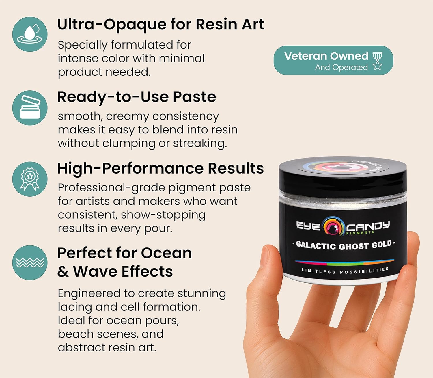 Eye Candy Pigments Premium Ghost Mica Powder - Galactic Ghost Gold (50gr) - for Epoxy, Resin, Soap, Paint, Woodworking, Acrylic Pouring, Bath Bombs, Fishing Lures - DIY Arts and Crafts Additive