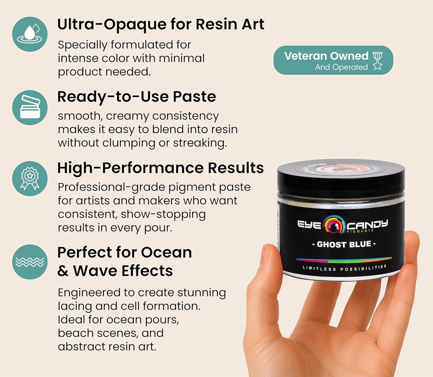 Eye Candy Premium Mica Powder Pigment “Ghost Blue” (25g) Multipurpose DIY Arts and Crafts Additive | Woodworking, Natural Bath Bombs, Resin, Paint, Epoxy, Soap, Nail Polish, Lip Balm (Ghost Blue, 25G)
