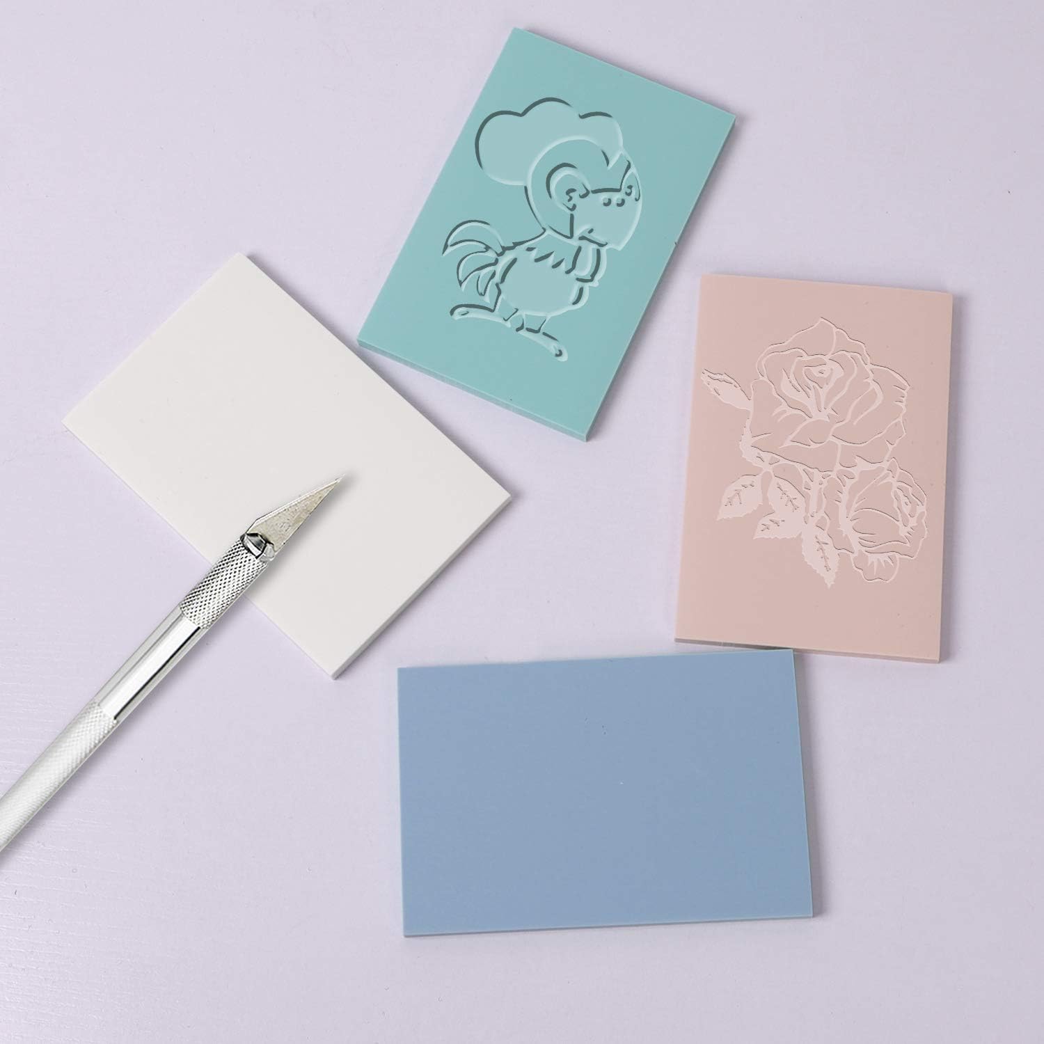 - COLORFUL RUBBER BLOCK SET - The carving tools for rubber stamps kit size 4 x 6 x 0.3 inches and is available 20 pieces to choose from. The set includes 5 pieces pink, 5 pieces mint green, 5 pieces white and 5 pieces blue to meet your different needs.
