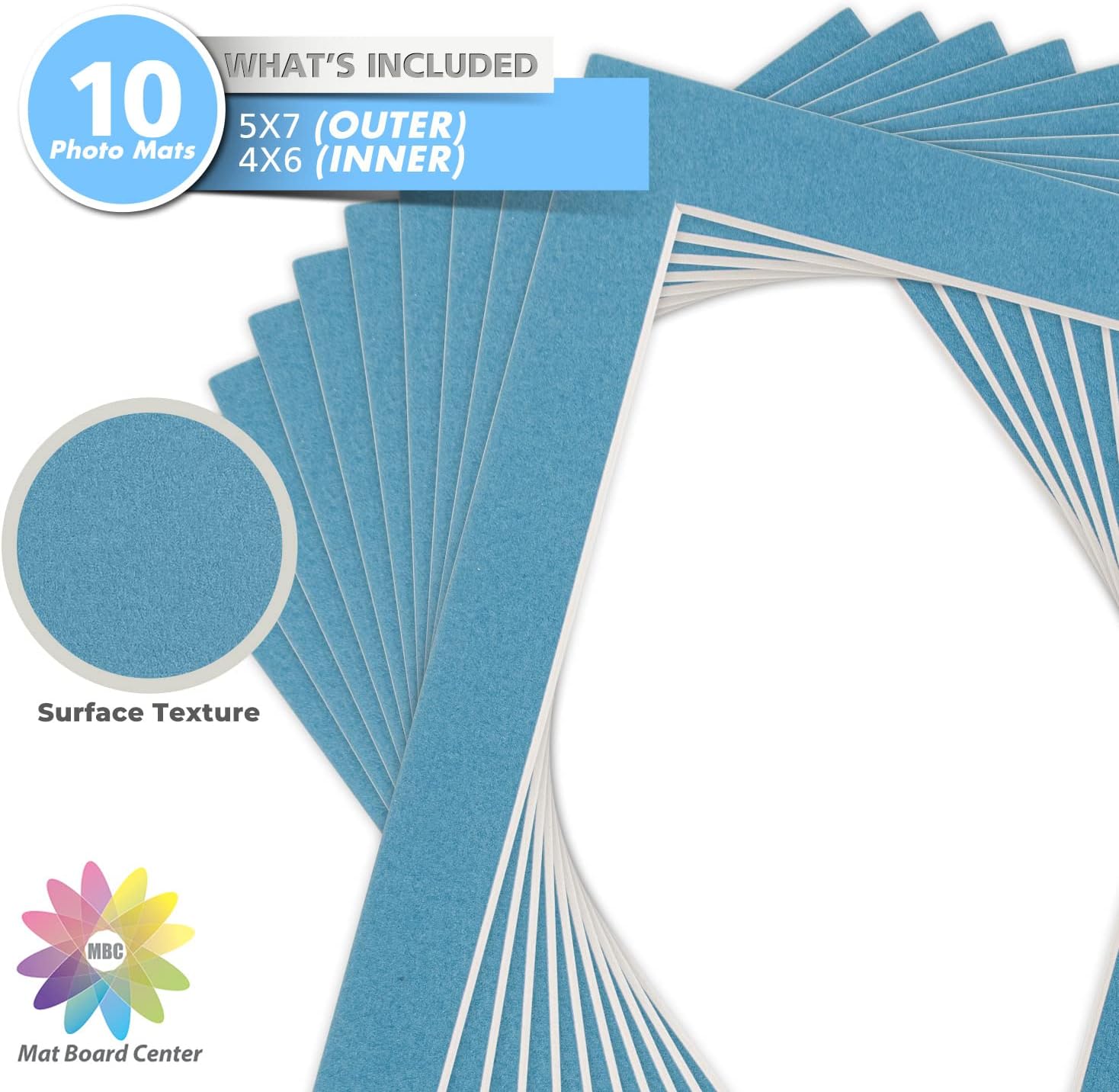 Mat Board Center, Pack of 10, 5x7 for 4x6 Dynamic Blue Color Mats - Bevel Cut, Acid Free, 4-ply Thickness, White Core - for Pictures, Photos, Framing