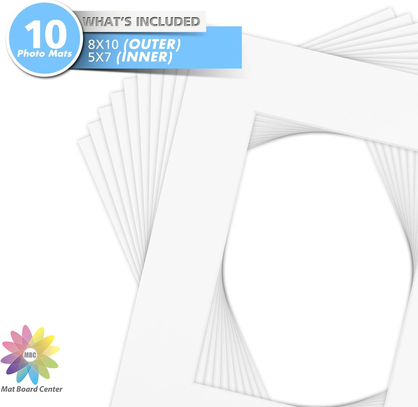 Mat Board Center, Pack of 10, 8x10 for 5x7 Off White Color Mats - Bevel Cut, Acid Free, 4-ply Thickness, White Core - for Pictures, Photos, Framing
