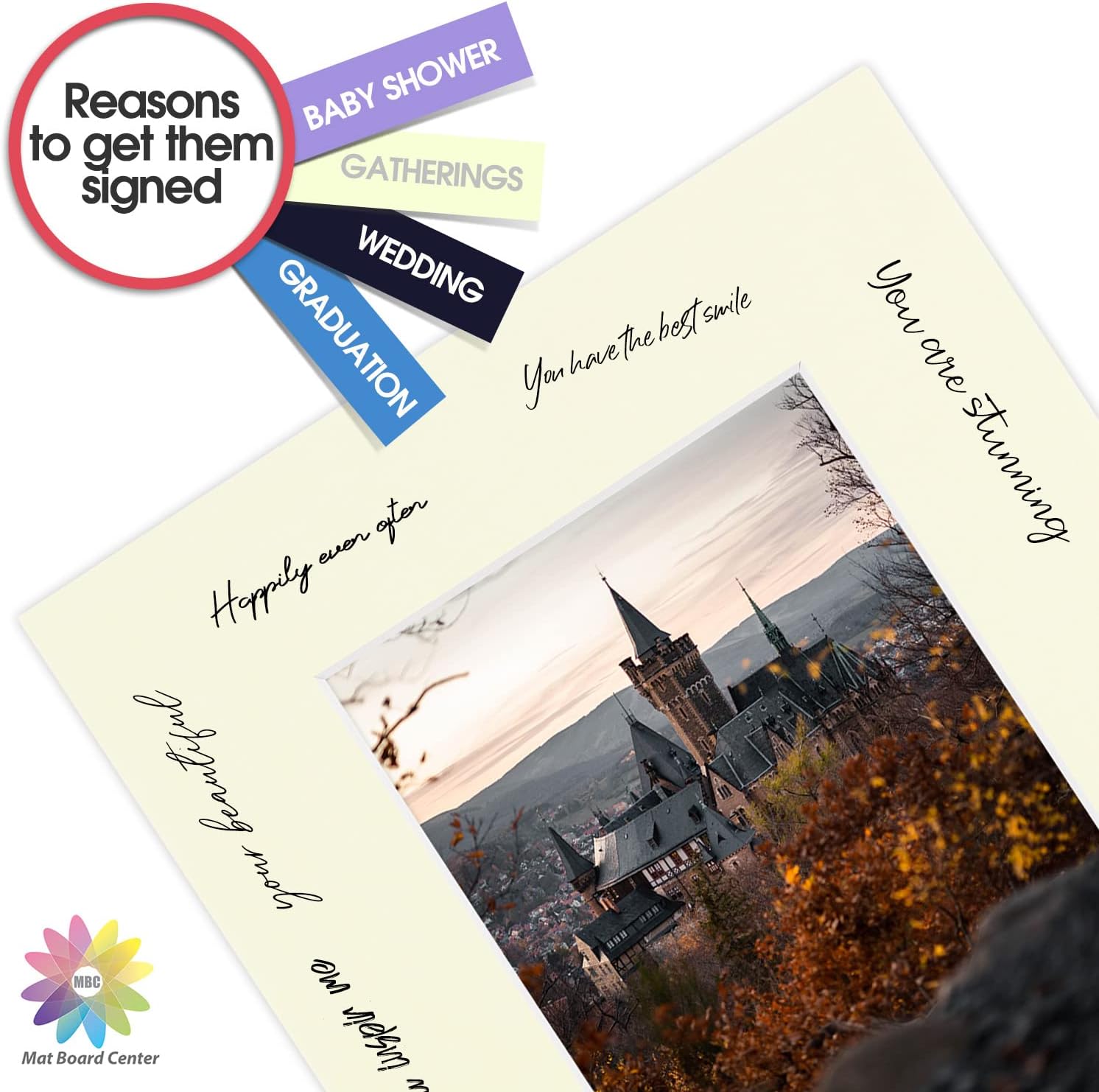Mat Board Center, Pack of 10, 8x10 for 5x7 Ivory Color Mats - Bevel Cut, Acid Free, 4-ply Thickness, White Core - for Pictures, Photos, Framing