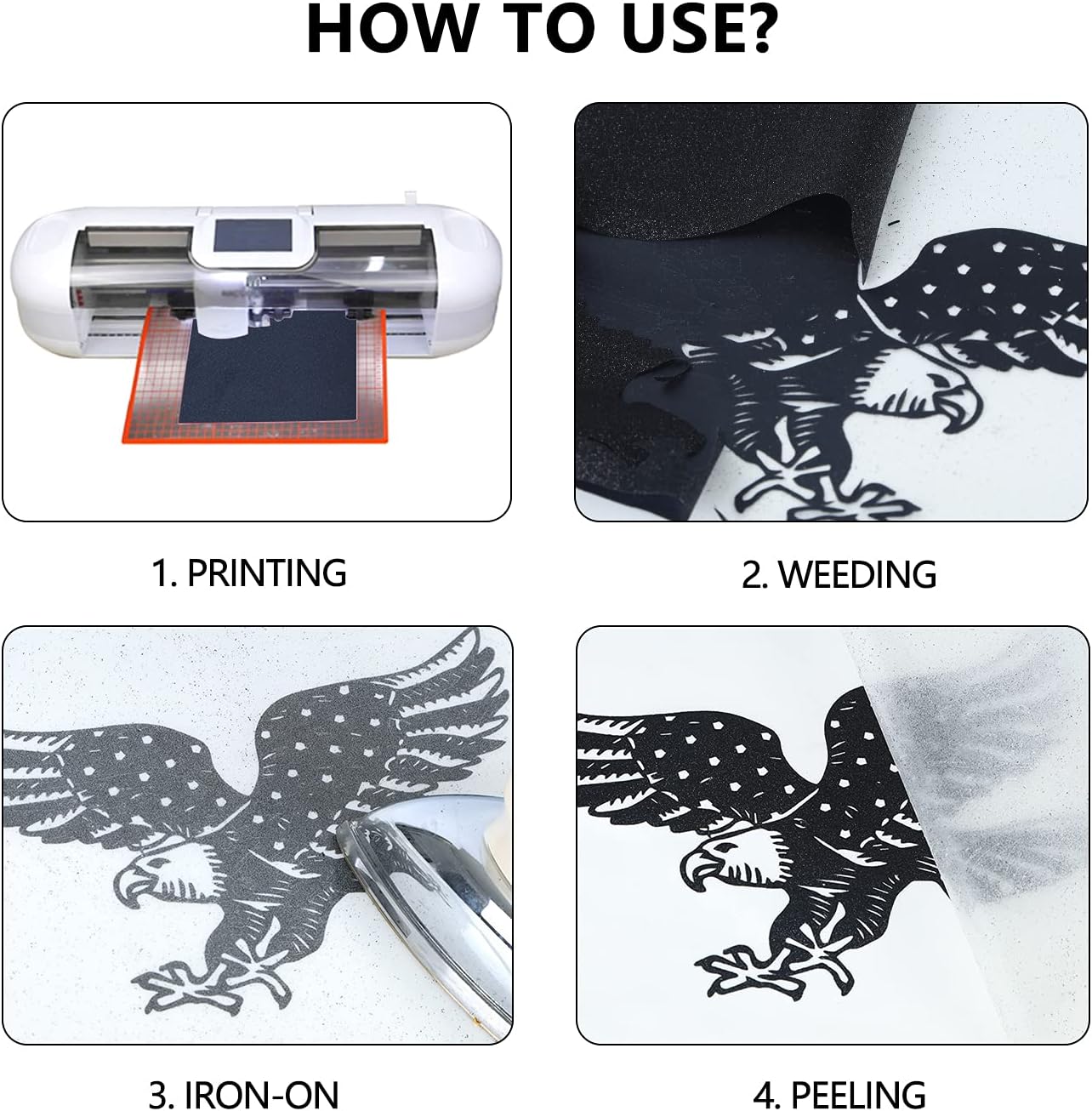 - UNLIMITED CREATIVITY: Each roll measures 12 inches x 8 feet, offering ample material for your creative projects. Cut them into various sizes to create art designs, logos, or letters for a wide range of projects, from t-shirts to bags to hats. Our glitter black htv vinyl is compatible with all cutting machines, ideal for 12x12" and 12x24" cutting pads