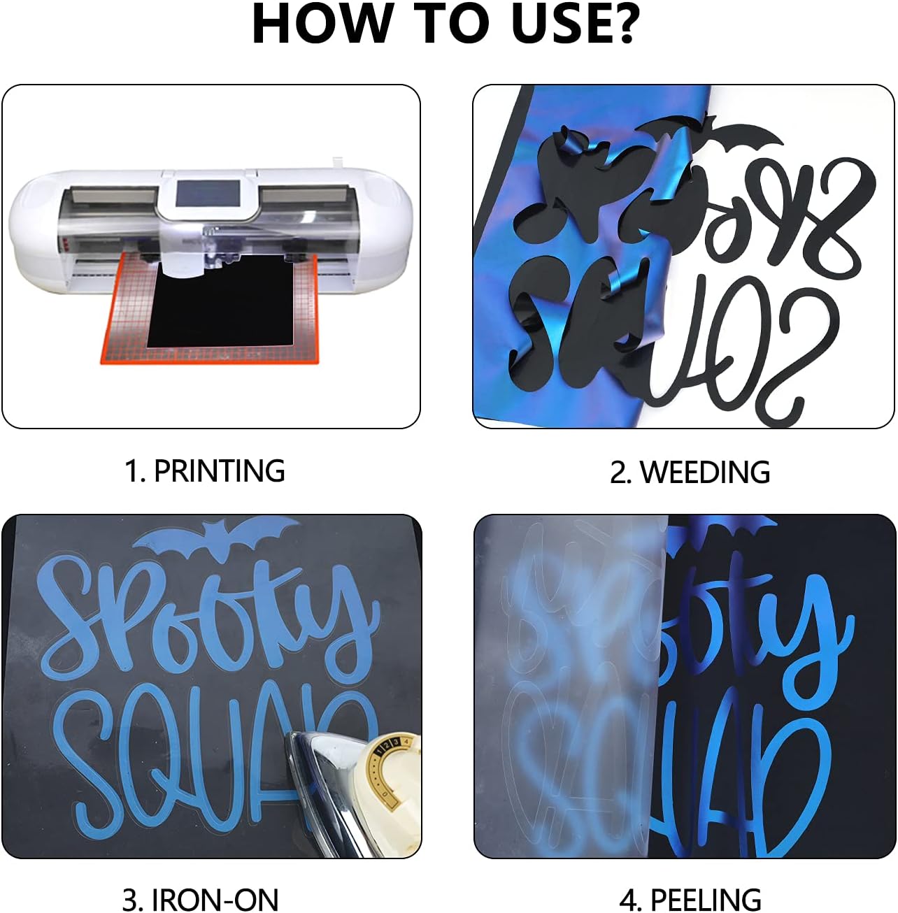 - ★HOW TO USE Chameleon HTV Vinyl? 1. Create your design on computer. 2. Peel the blue protective film. 3. Cut the dull side, clear film facing down 4. Weed away the excess vinyl, can use a weed tool. 4.Put your project on target area, apply the design to your T-shirt with heat press at 302-330℉/10s-20s (if you use a home iron, firmly press and take more time in every area) 5. Warm Peel