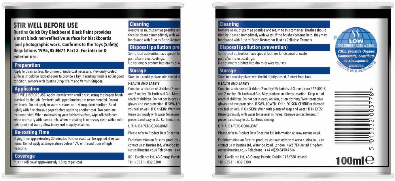 - Easy Application for Instant Creativity: Apply with ease and let your imagination flow. Rustins Blackboard Black Paint is designed for hassle-free application. ADD TO CART now for your creative haven.