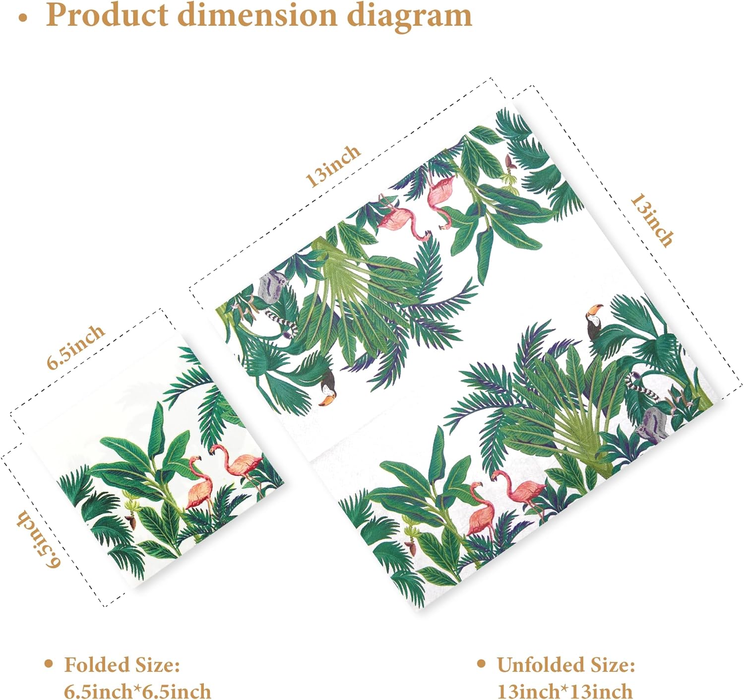 - MEASUREMENT: 6.5 x 6.5 inches folded, 13 x 13 inches unfolded. The package includes 80 sheets of napkins.