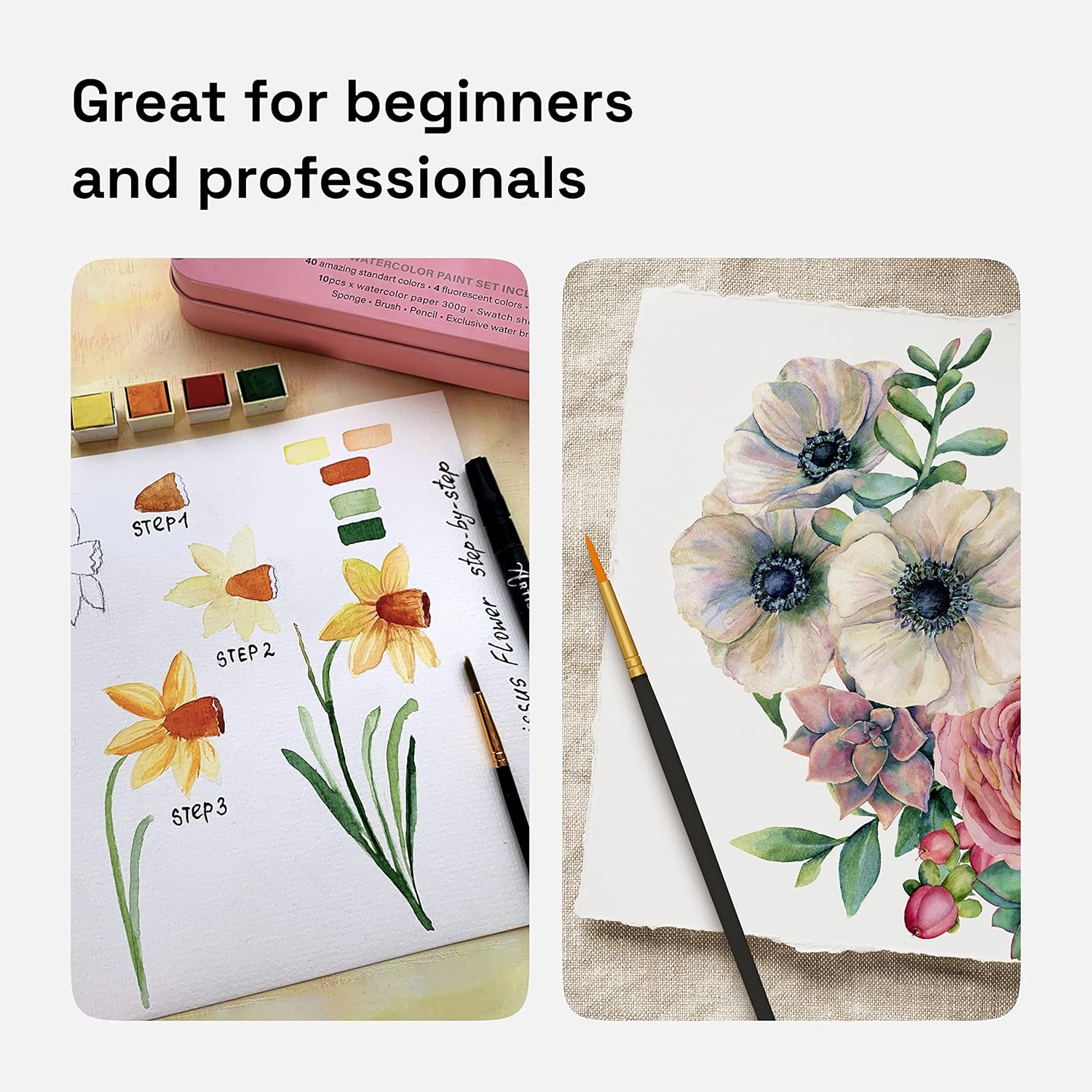 - High Quality Watercolor Set: Make your watercolor art come to life with vibrant colors. This professional watercolor paint set was designed for both beginners and pros. These watercolor paints are ideal for coloring books, bullet journaling, sketching, lettering, and more.
