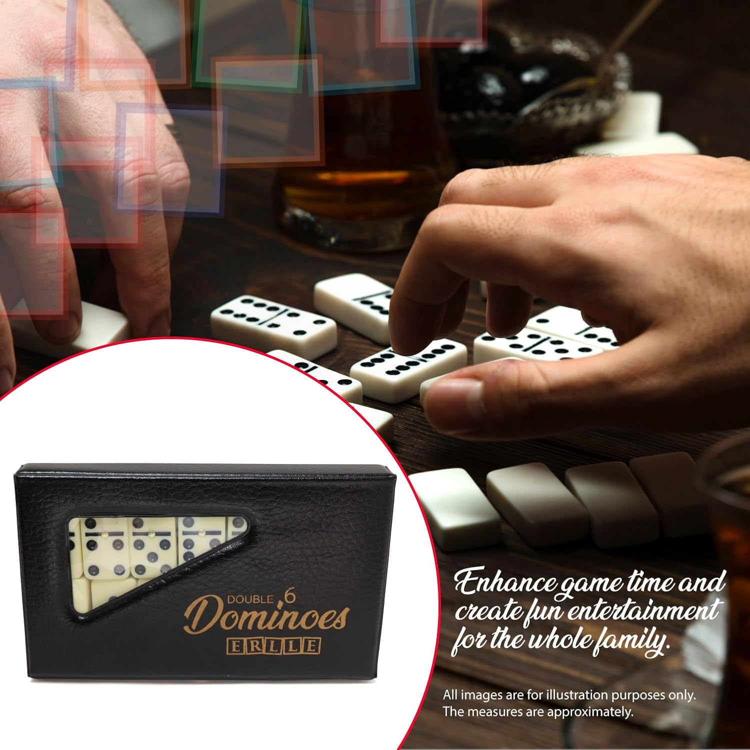 ERLLE - Premium Double 6 Dominoes Set, Classic Domino Game with Vinyl Case, Tiles for Adults & Kids, Mexican Train & Family Game Night