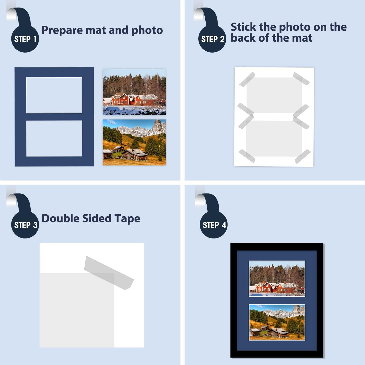 - 8x10 mats pre-cut for two 4x6-inch pictures, photos, and artworks
