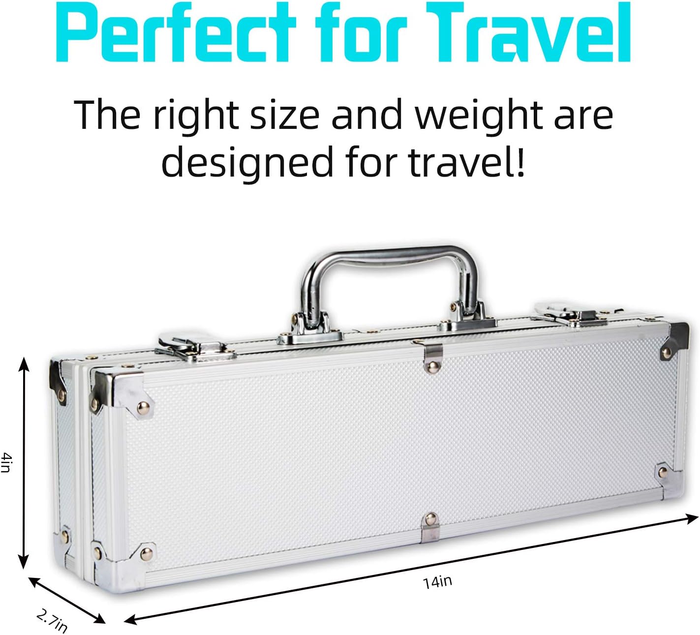 - π² CARRYING CASE: This elegant rummy cube set comes with a sturdy aluminum case for convenient storage game racks and rummy tiles and for easy carrying of the rummy set while on the go. Take it with you to school club, park, camping and much more.