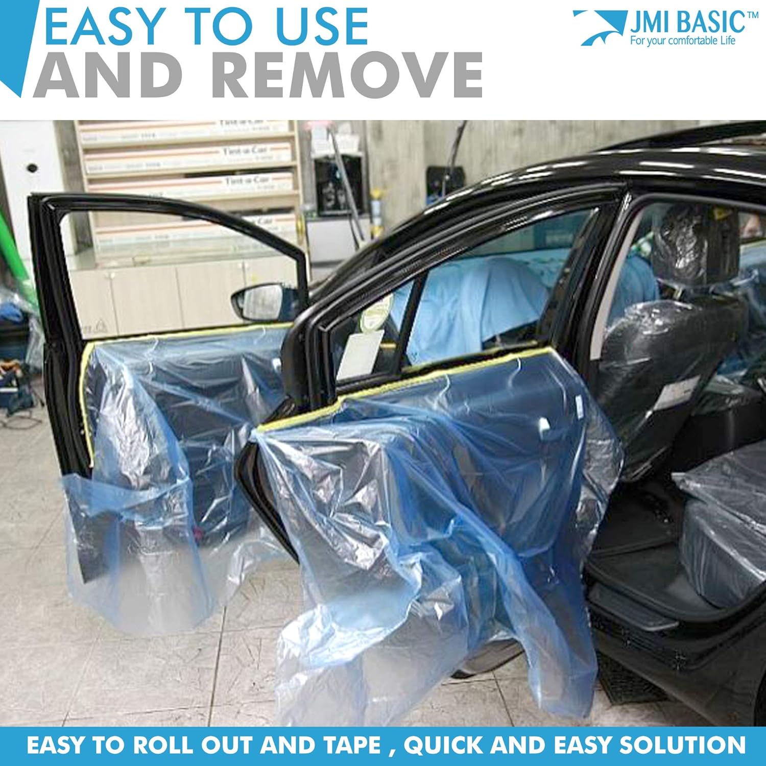 - Optimized for automotive paint: Plastic sheeting with yellow tape protects vehicle parts and auto body paint surfaces from overspray and bleed-throughs from auto paint, spray paint. Provides automation suction fit due to static electricity produced by friction.