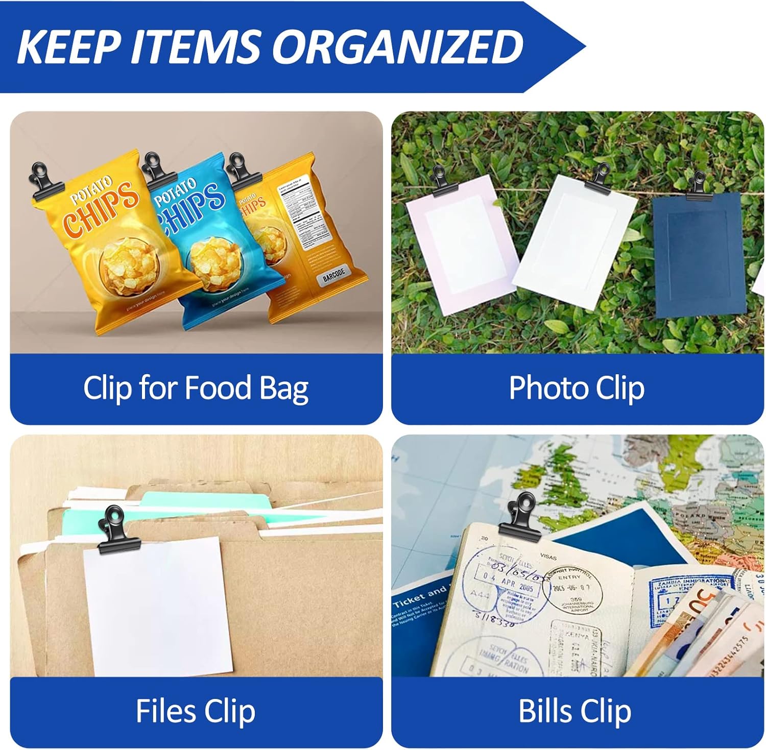 - Strong Grip & Tightness: Bulldog binder paper clips built-in high-elasticity spring to ensure a solid grip. Prevents your important documents from falling out. Protects your food from moisture and spoilage