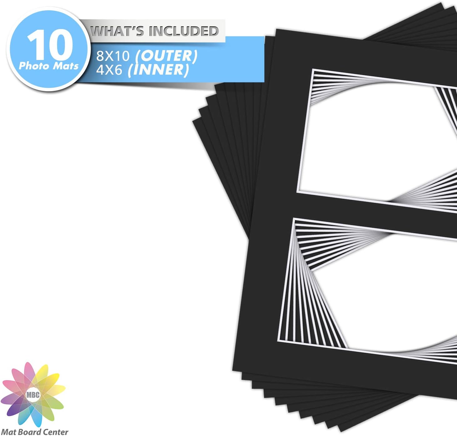 Mat Board Center, Pack of 10, Photo Picture Mats - Acid Free, 4-ply Thickness, White Core - for Pictures, Photos, Framing (8x10 for 2-4x6 Black)