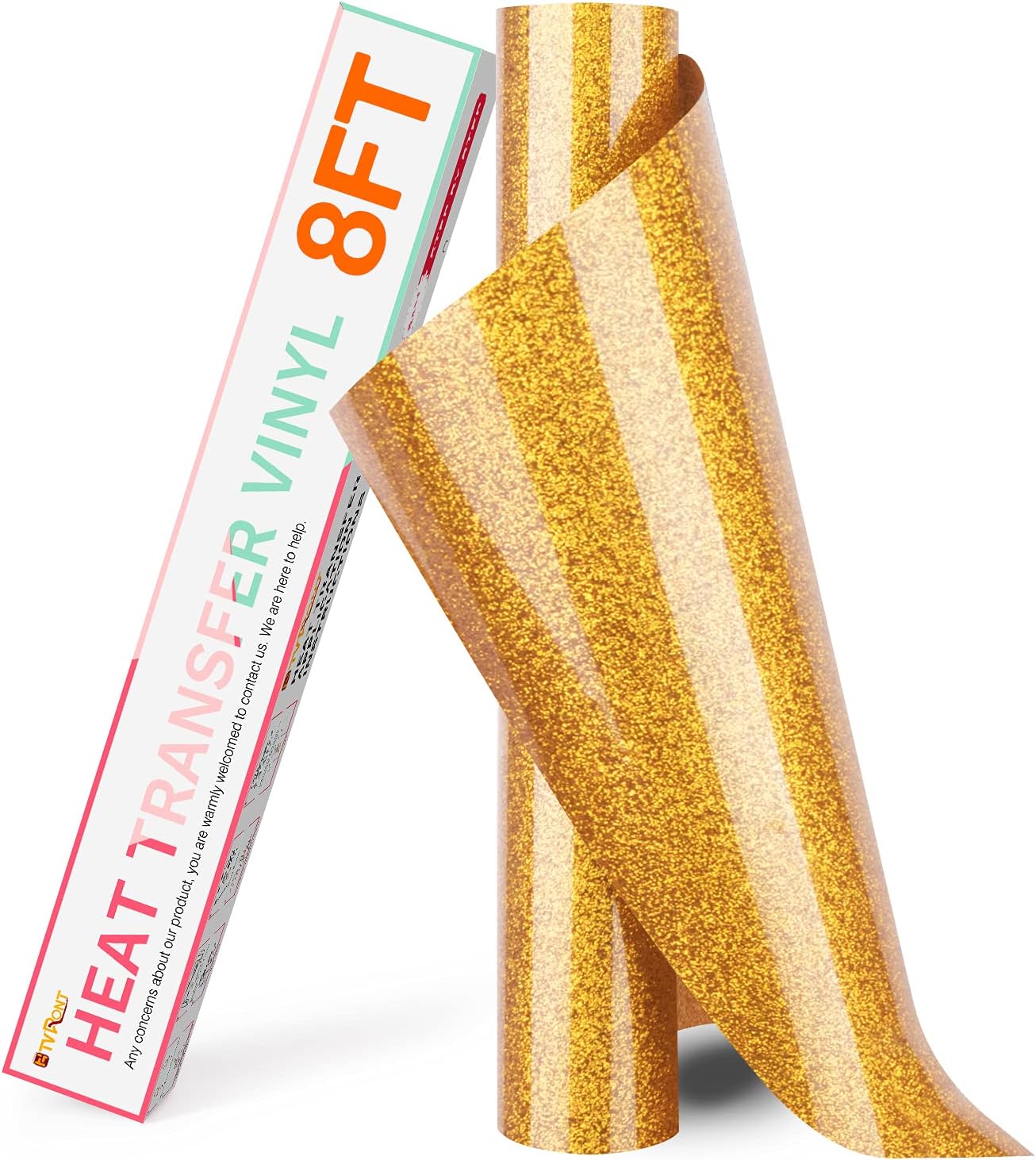 HTVRONT Gold Glitter HTV Heat Transfer Vinyl Rolls - 10" x 8ft Gold Glitter HTV Vinyl for Shirts, Glitter Iron on Vinyl for All Cutting Machine - Easy to Cut & Weed for Heat Vinyl Design (Gold)