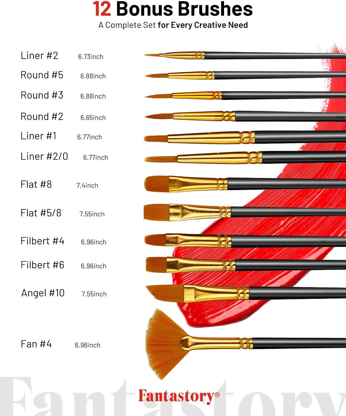 - 🎨[ Excellent Painting Set ]:This set offering a one-stop solution with premium paints and versatile brushes. It is cost-effective and easy to use. The cleverly designed brushes meet various stroke requirements, helping you create with precision. Whether you're an art student improving your skills or a hobbyist creating daily, you’ll enjoy a quality experience. The set comes in exquisite packaging, making it a perfect gift for the holidays.
