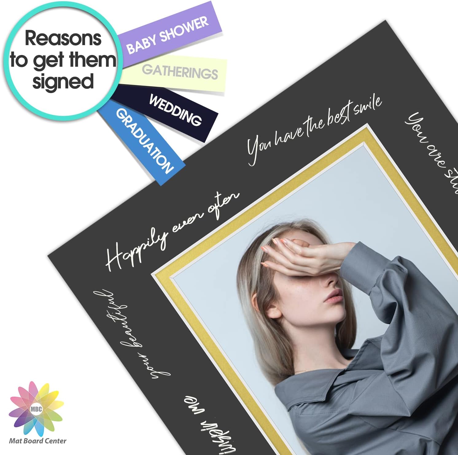 Mat Board Center, Double Mat - Acid Free, 8-ply Thickness, White Core - for Pictures, Photos, Framing (Black Over Gold, 8x10 for 5x7, Pack of 5)