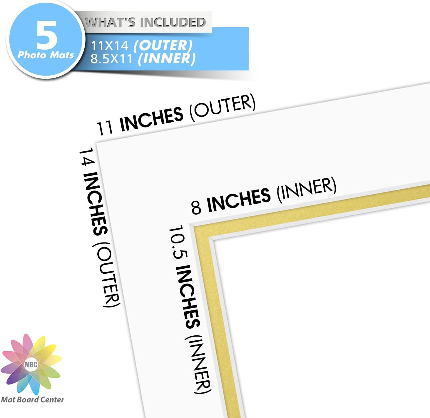 Mat Board Center, Double Mat - Acid Free, 8-ply Thickness, White Core - for Pictures, Photos, Framing (Off White Over Gold, 11x14 for 8.5x11, Pack of 5)