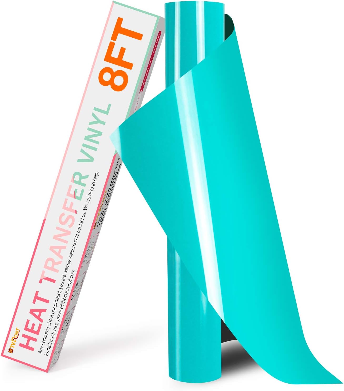HTVRONT HTV Vinyl Rolls Heat Transfer Vinyl - 12" x 8ft Turquoise HTV Vinyl for Shirts, Iron on Vinyl for All Cutting Machine - Easy to Cut & Weed for Heat Transfer Design (Turquoise)