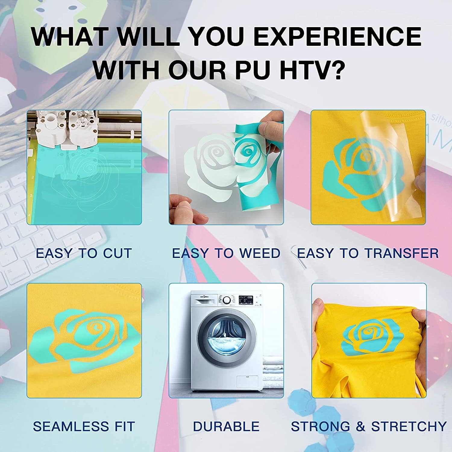 - 【EASY TO CUT WEED TRANSFER】Our premium quality heat transfer vinyl will save time which you may waste on each image or letter, because you can cut and weed easily through the designs just right. The iron on vinyl is sensitive to temperature and pressure, which can be heat transferred to any t-shirt easily. Before cutting, make sure the blade is clean and sharp, so that your design can be cut well and weeding can be done better