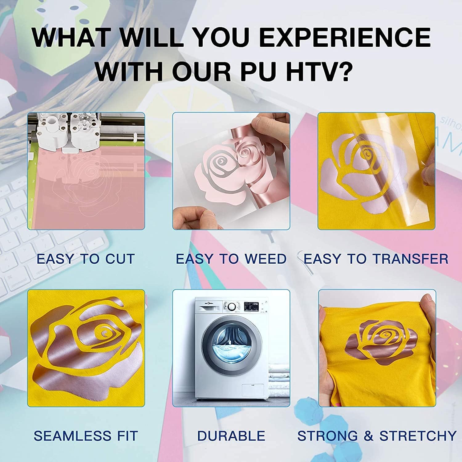 - 【EASY TO CUT WEED TRANSFER】Our premium quality heat transfer vinyl will save time which you may waste on each image or letter, because you can cut and weed easily through the designs just right. The iron on vinyl is sensitive to temperature and pressure, which can be heat transferred to any t-shirt easily. Before cutting, make sure the blade is clean and sharp, so that your design can be cut well and weeding can be done better