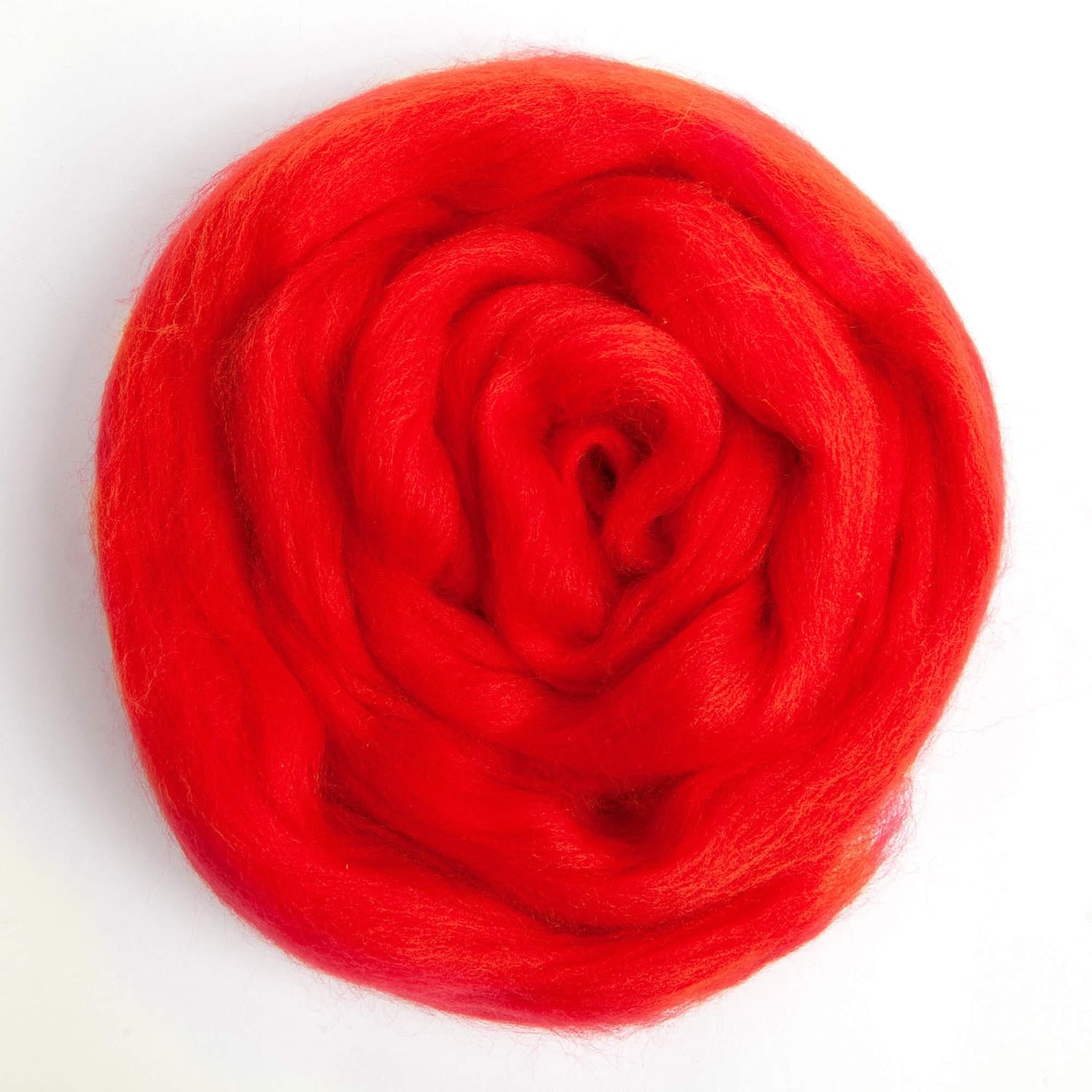 Desert Breeze Distributing 100% Natural Merino Wool Roving - Premium Combed Top Merino Roving Wool - Tapestry, Spinning, Wet Felting & Needle Felting Supplies - 21.5 Micron - 1 oz, Color Tomato Red