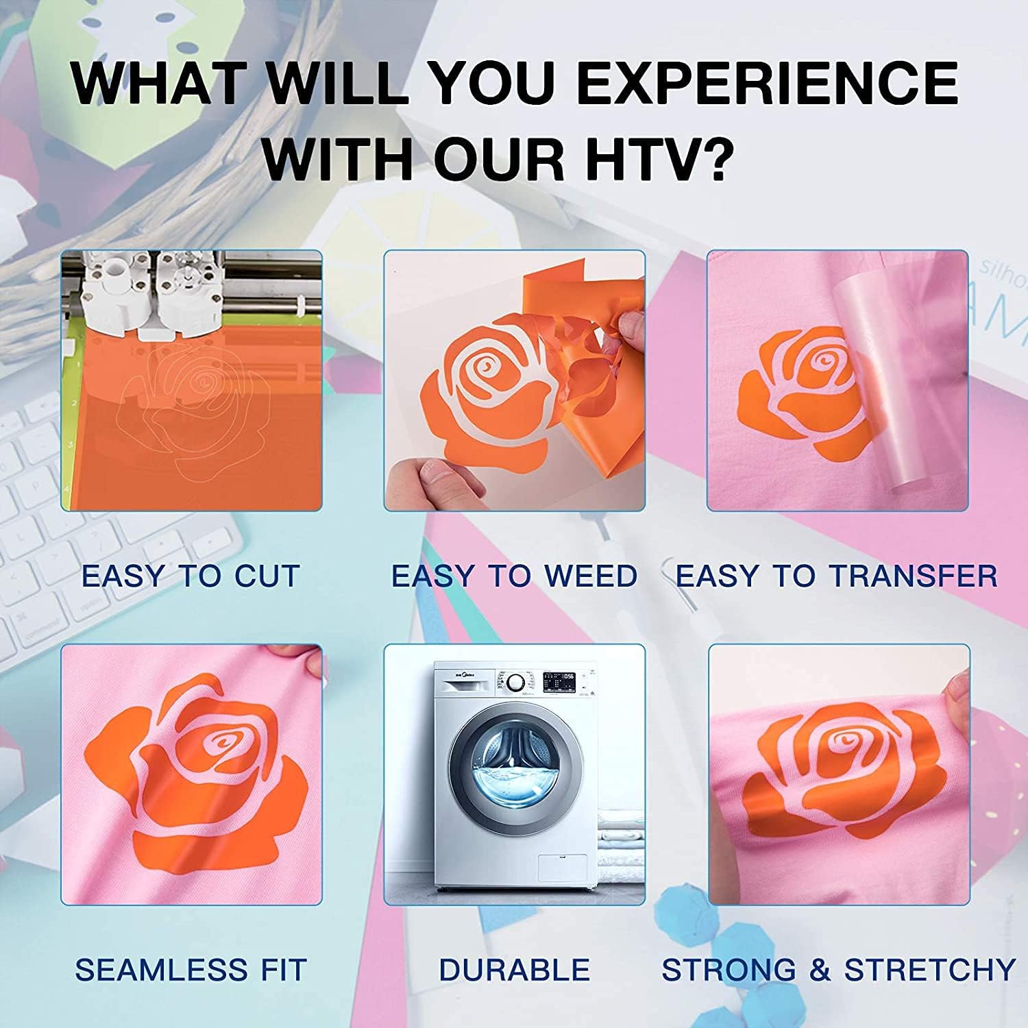 - 【EASY TO CUT WEED TRANSFER】Our premium quality heat transfer vinyl will save time which you may waste on each image or letter, because you can cut and weed easily through the designs just right. The iron on vinyl is sensitive to temperature and pressure, which can be heat transferred to any t-shirt easily. Before cutting, make sure the blade is clean and sharp, so that your design can be cut well and weeding can be done better