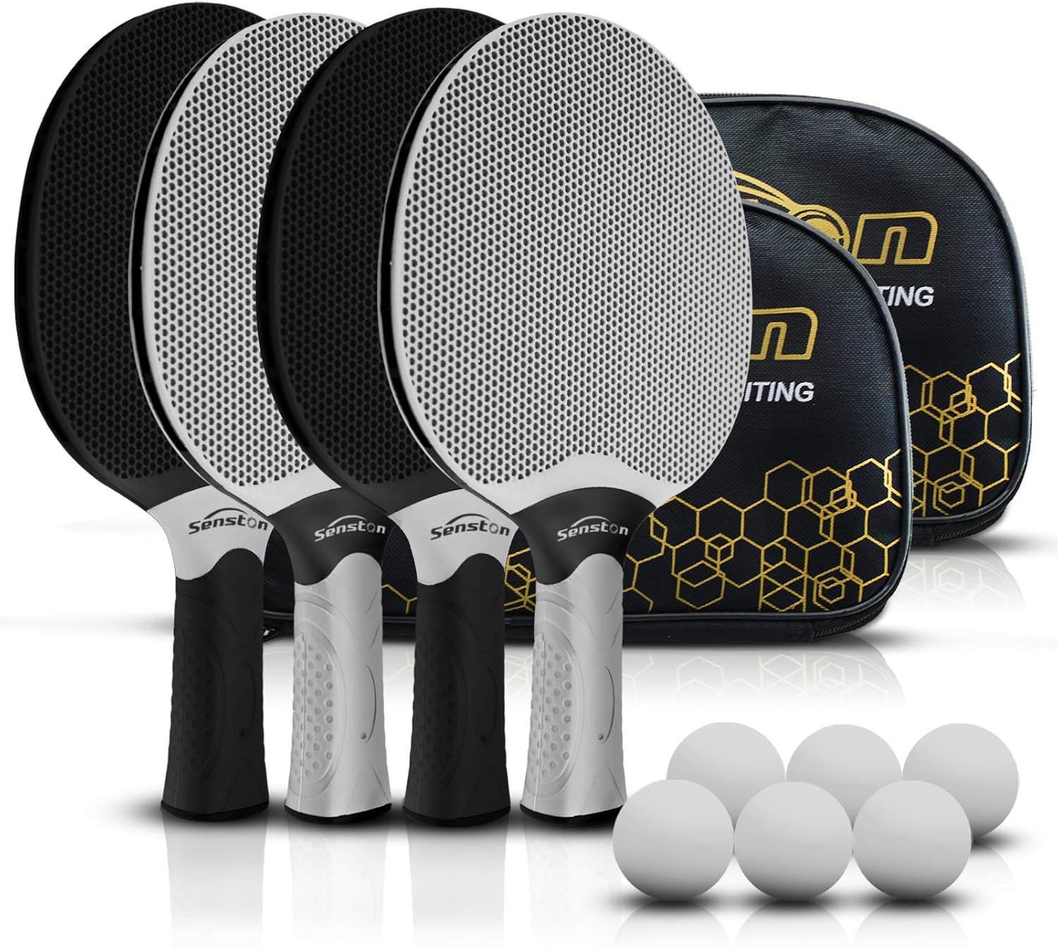 Senston Table Tennis Rackets Set,Professional Ping Pong Paddle Set for 4 Players, Composite Rubber Table Tennis Paddles, Indoor or Outdoor Games.