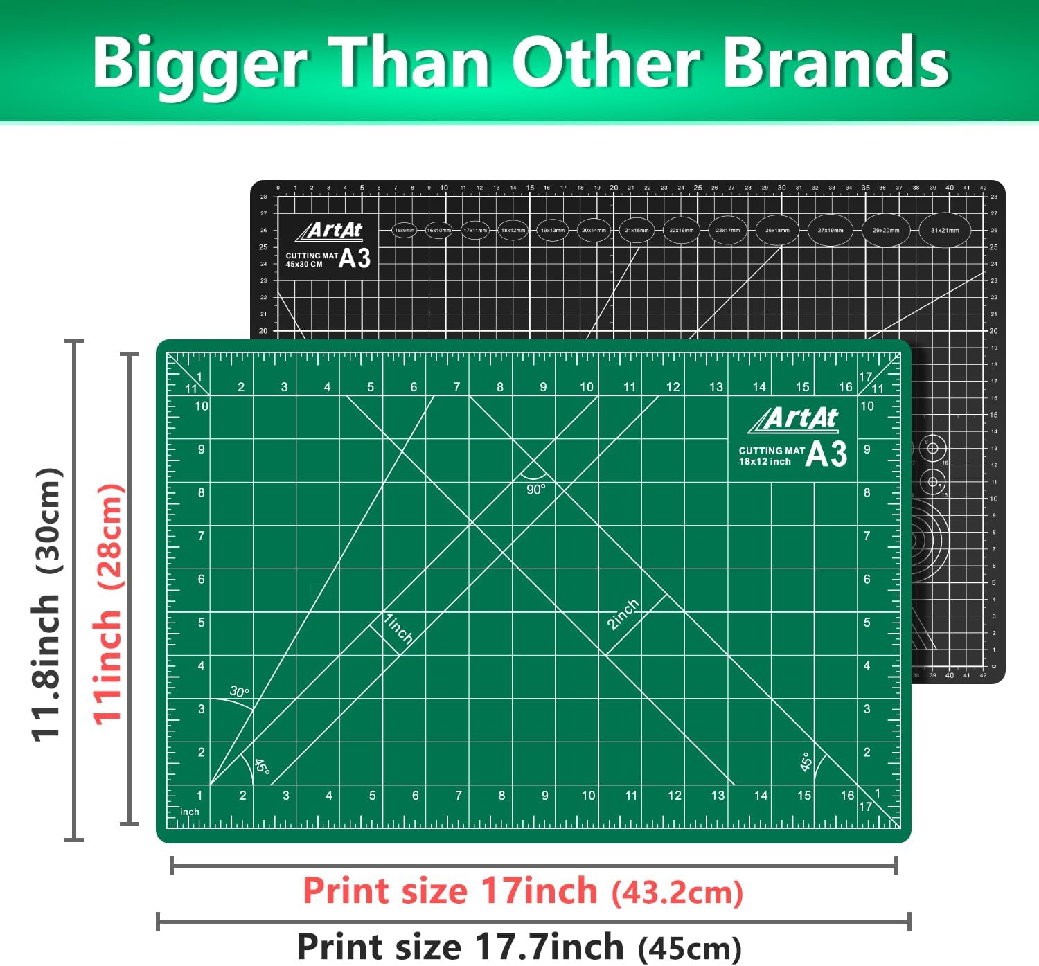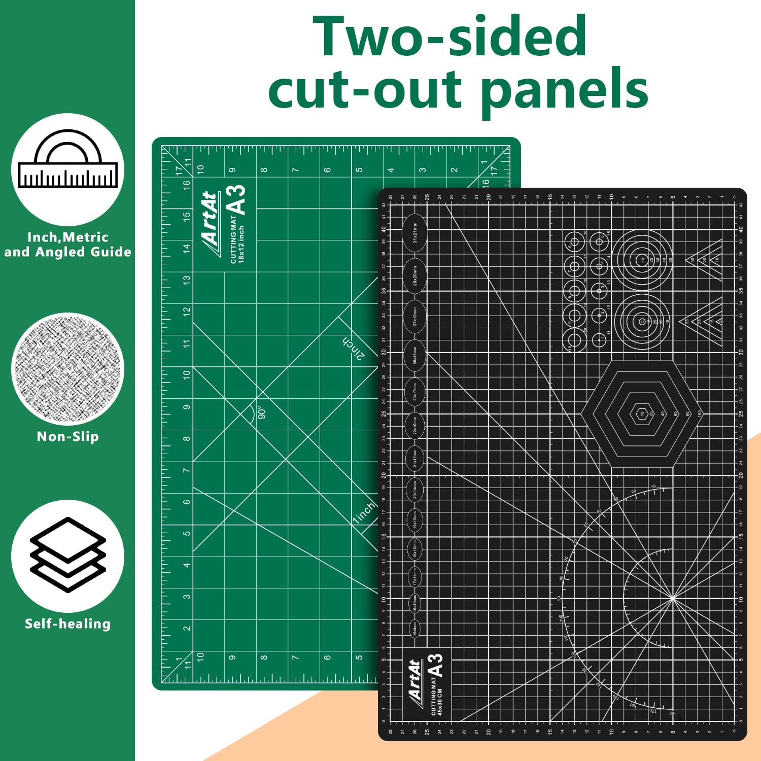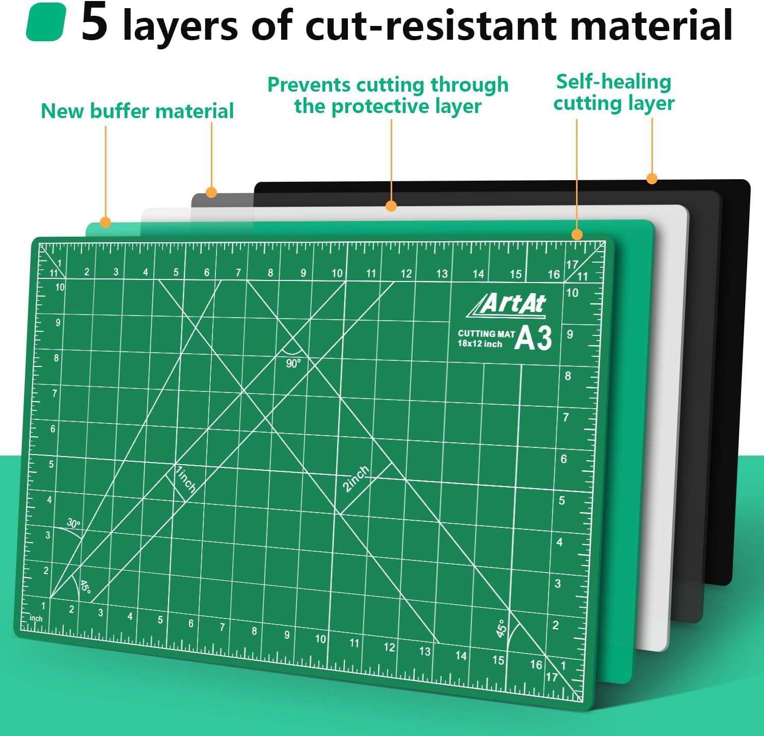 - ăA3 CUTTING MATăOur cutting mat boasts a durable 5-ply self-healing design, complete with 1/2" grid and 1/8" marks for precise alignment, 30° 45° 60° 90° guides, and diagonal cutting lines.