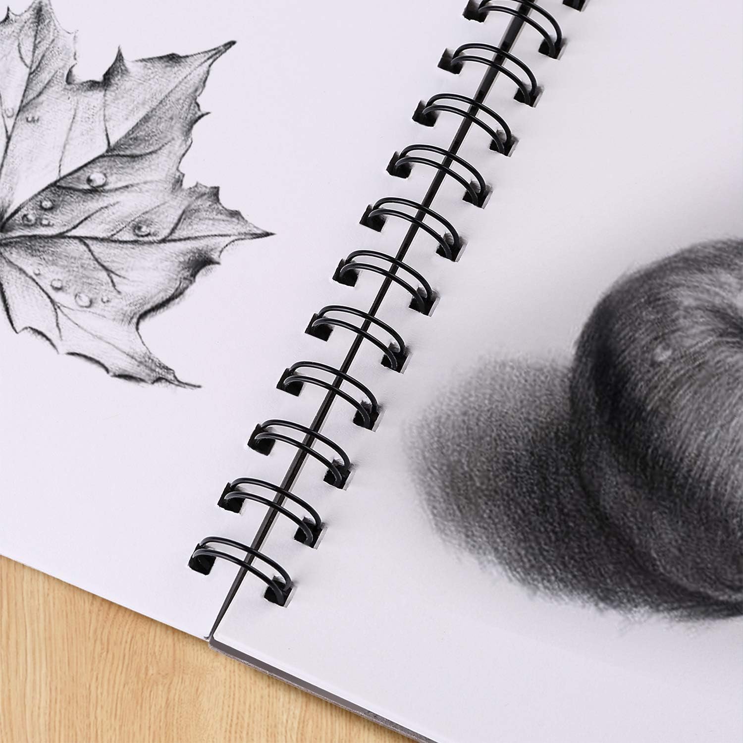 - WONDERFUL DESIGN FEATURES - Top spiral make our sketchpad friendly for both left-handed and right-handed, paper inside the sketchbook is very beautiful & smooth while drawing. Pages are easily torn from the notebook with punctures. Perfect use for adults & kids.
