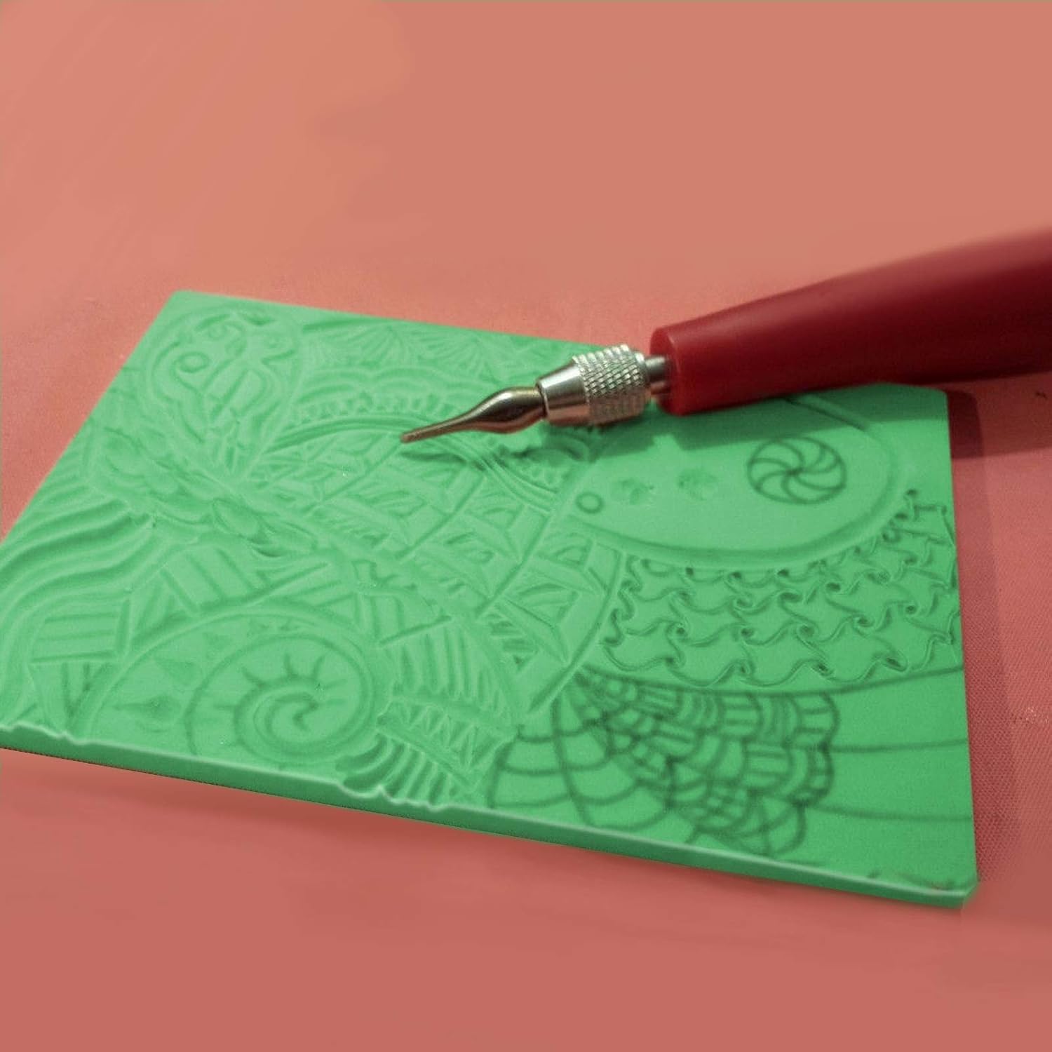 - GREEN RUBBER BLOCK SET - The green carving tools for rubber stamps kit size 4 x 6 x 0.3 inches and is available 20 pieces to choose from.