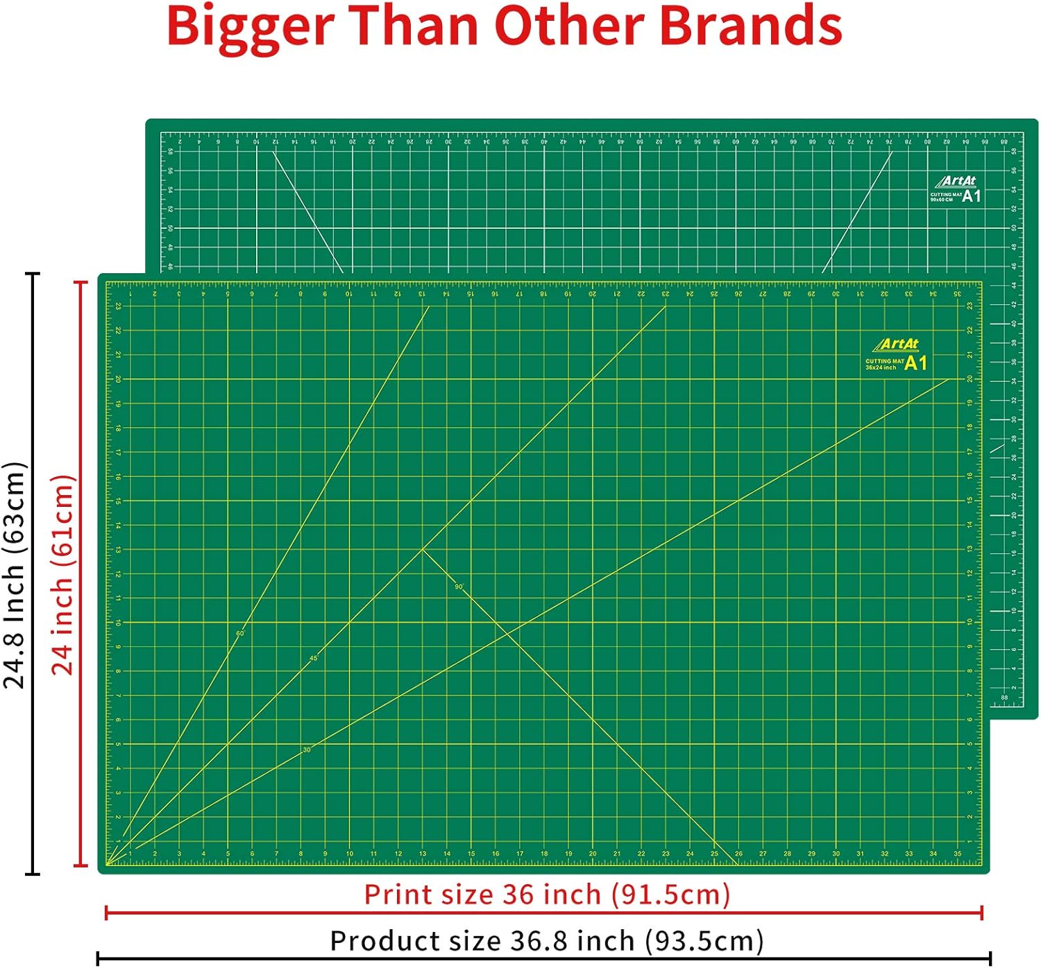 - 【A1 CUTTING MAT】Accurate cutting double sided, both inches and metric gridlines & angles.Mat size: 36.8 x 24.8inches(93.5 x 63cm), Grid size: 36 x 24inches(61x 91.5cm), thickness 3MM, different angles 30°45°and 90°,Easy to read