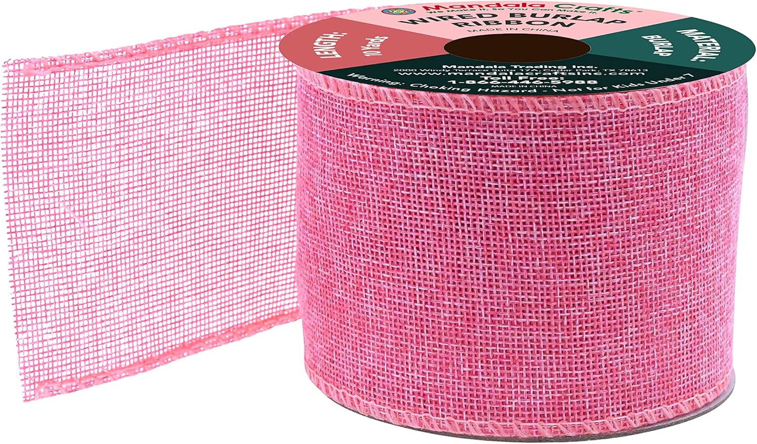 Mandala Crafts Pink Burlap Wired Ribbon 3 Inches Wide Jute Ribbons for Crafts - 10 Yds Roll Rustic Burlap Wrap Trim Ribbons for Wreaths Bows Party Decoration