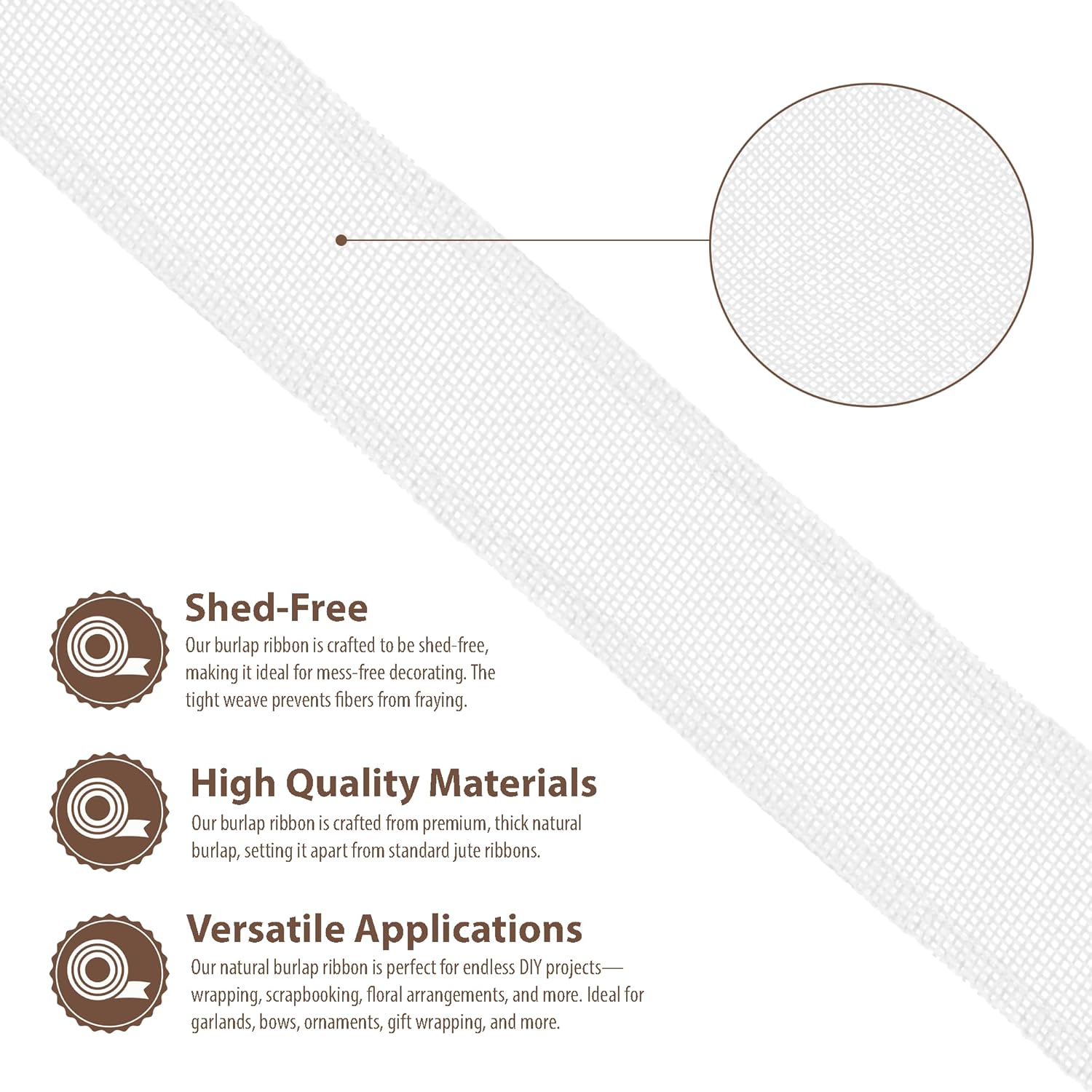- Wired Burlap Ribbon: Compared to other jute burlap ribbons, our rustic burlaps ribbon with a fray & shed-resistant hemmed edges is made from thicker white burlap fabric. The indoor & outdoor colored burlap crafts ribbon is colorfast and will not bleed.