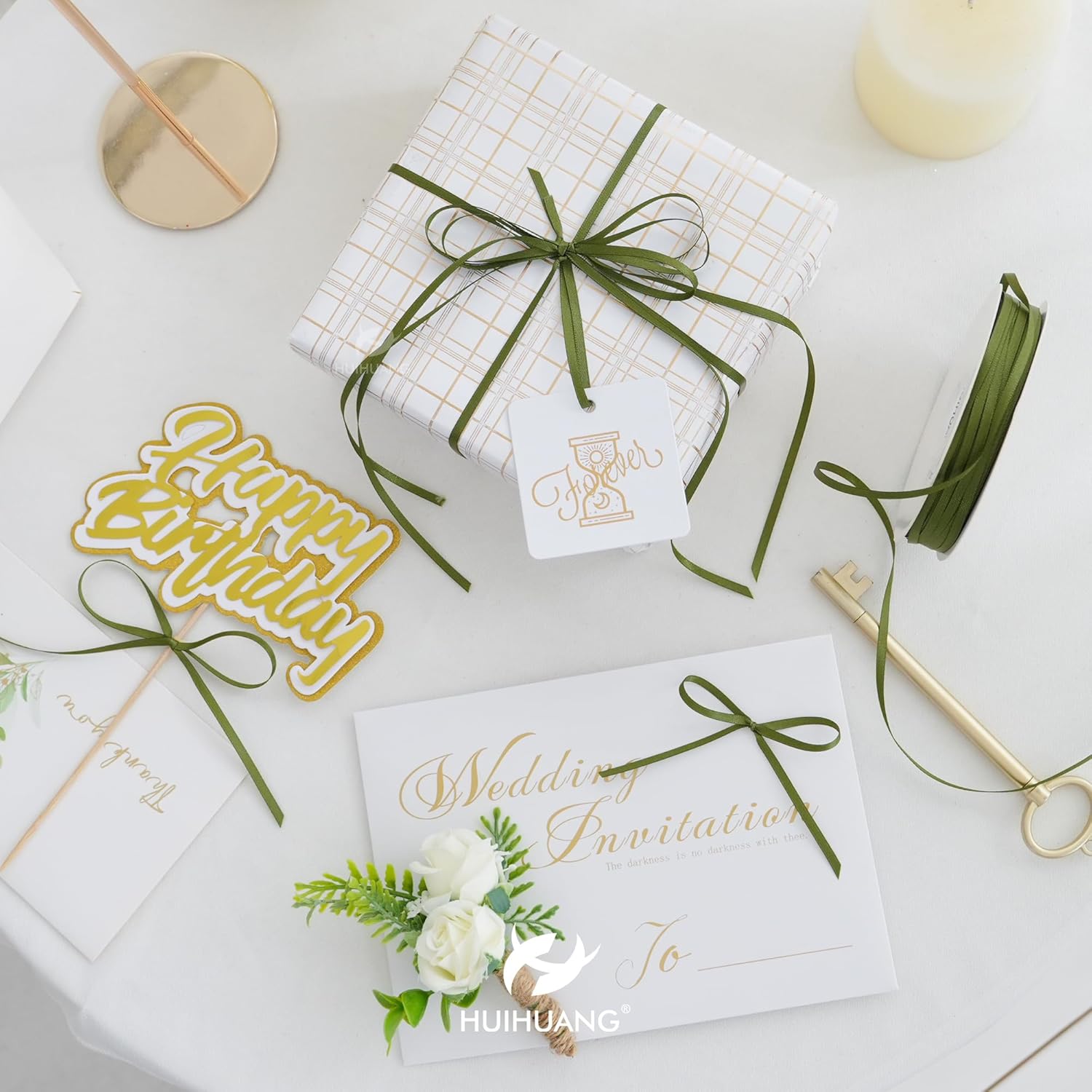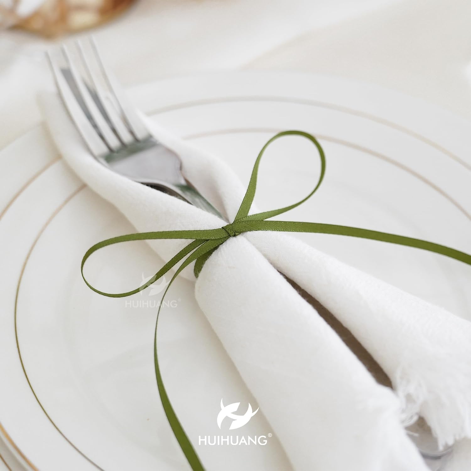 HUIHUANG 1/8 inch Moss Green Ribbon Solid Color Thin Satin Ribbon 100 Yards Double Faced Thin Crafts Ribbon for Hanging Gift Tags Invitation Card DIY Crafts Gift Wrapping Bows Bouquet Decoration