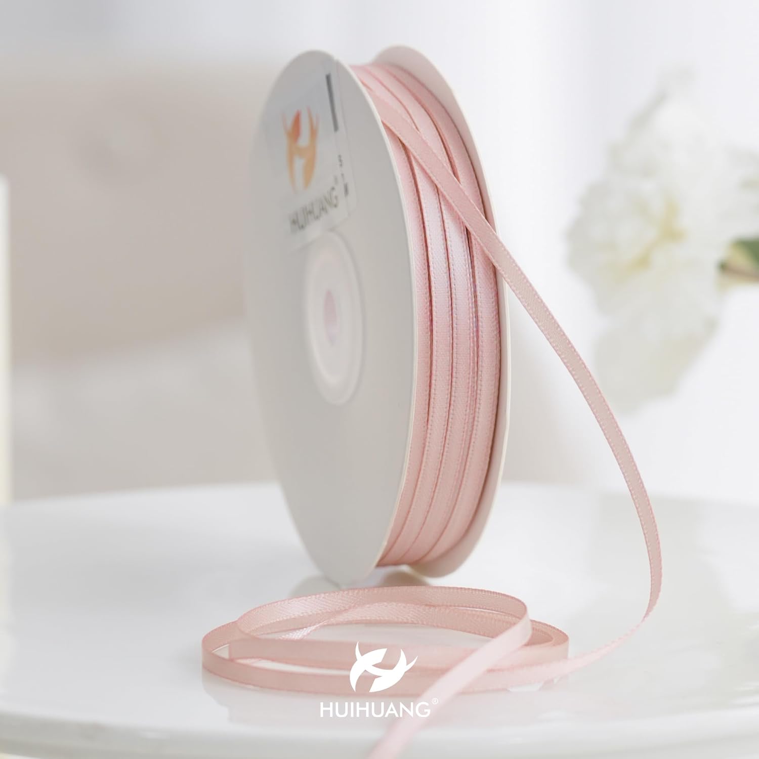 HUIHUANG Rose Gold Ribbon 1/8 inch Solid Color Thin Satin Ribbon 100 Yards Continuous for Crafts DIY Bows Decoration Sewing and Invitation Card Gift Tags Christmas Ornaments Wedding Decoration