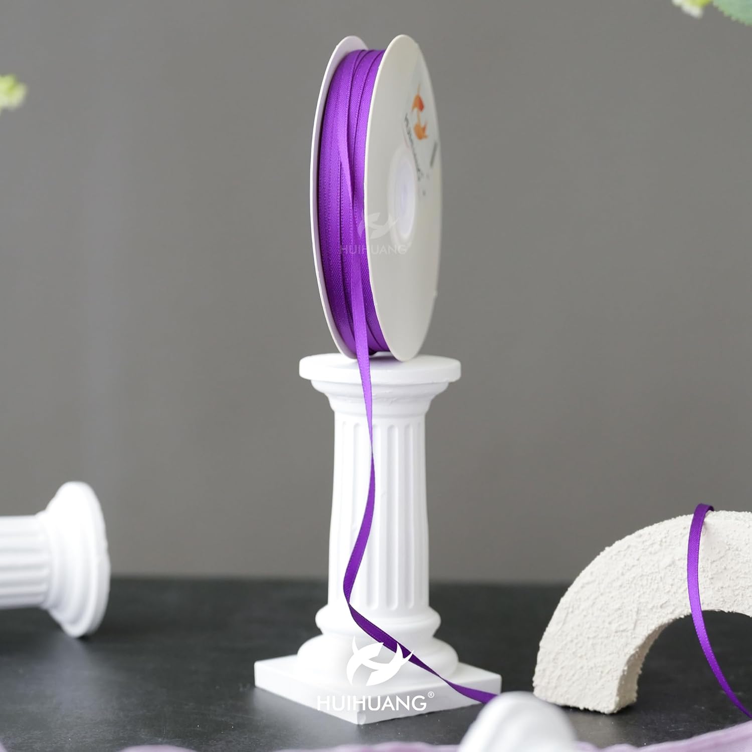 HUIHUANG Purple Ribbon 1/8 inches Solid Color Satin Ribbon100 Yards Double Faced Thin Ribbon Roll for Crafts Gift Wrapping DIY Bows Bouquet Decoration