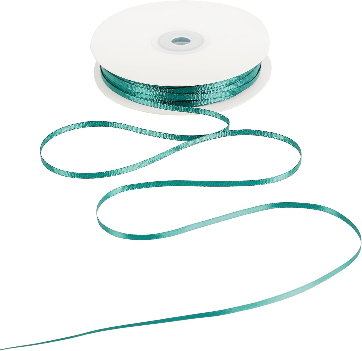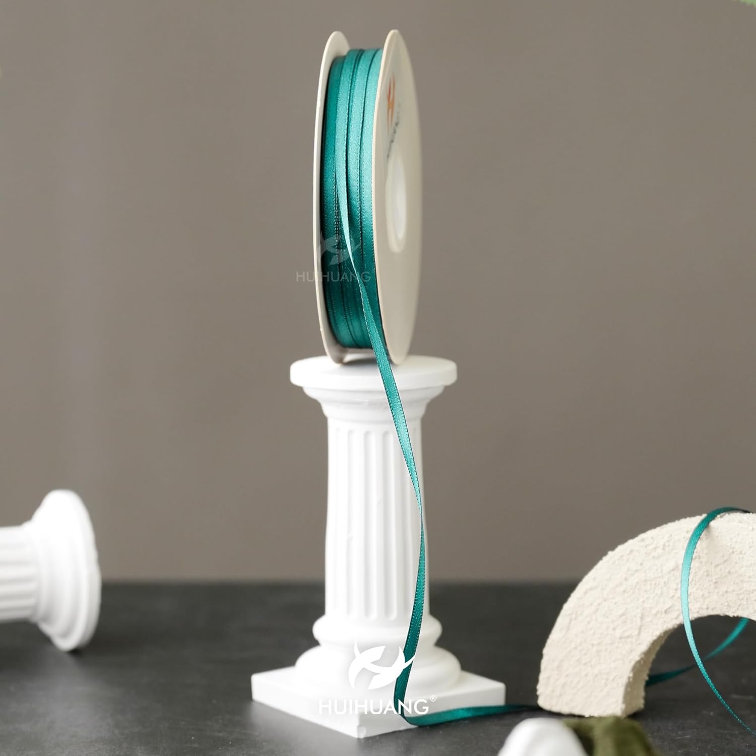 HUIHUANG Teal Green 1/8" Solid Color Thin Satin Ribbon 1/8 inch x 100 Yards for Crafts, Thin Green Ribbon for Gift Tags, Invitation Card, Gift Wrapping, Holiday Party Decor, Christmas Ornaments