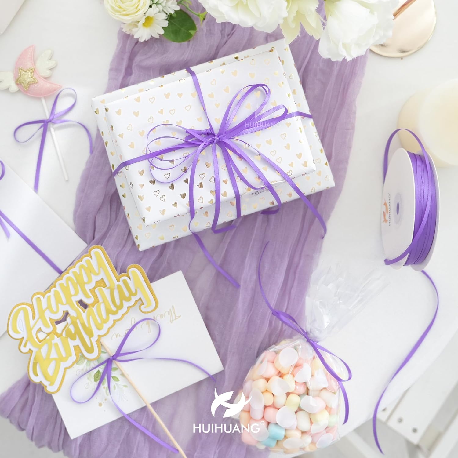 HUIHUANG Solid Color Satin Ribbon 1/8 inch x 100 Yards Roll Ribbon Light Purple Thin Ribbon for Crafts Sewing Gift Wrapping DIY Bows (Hyacinth)
