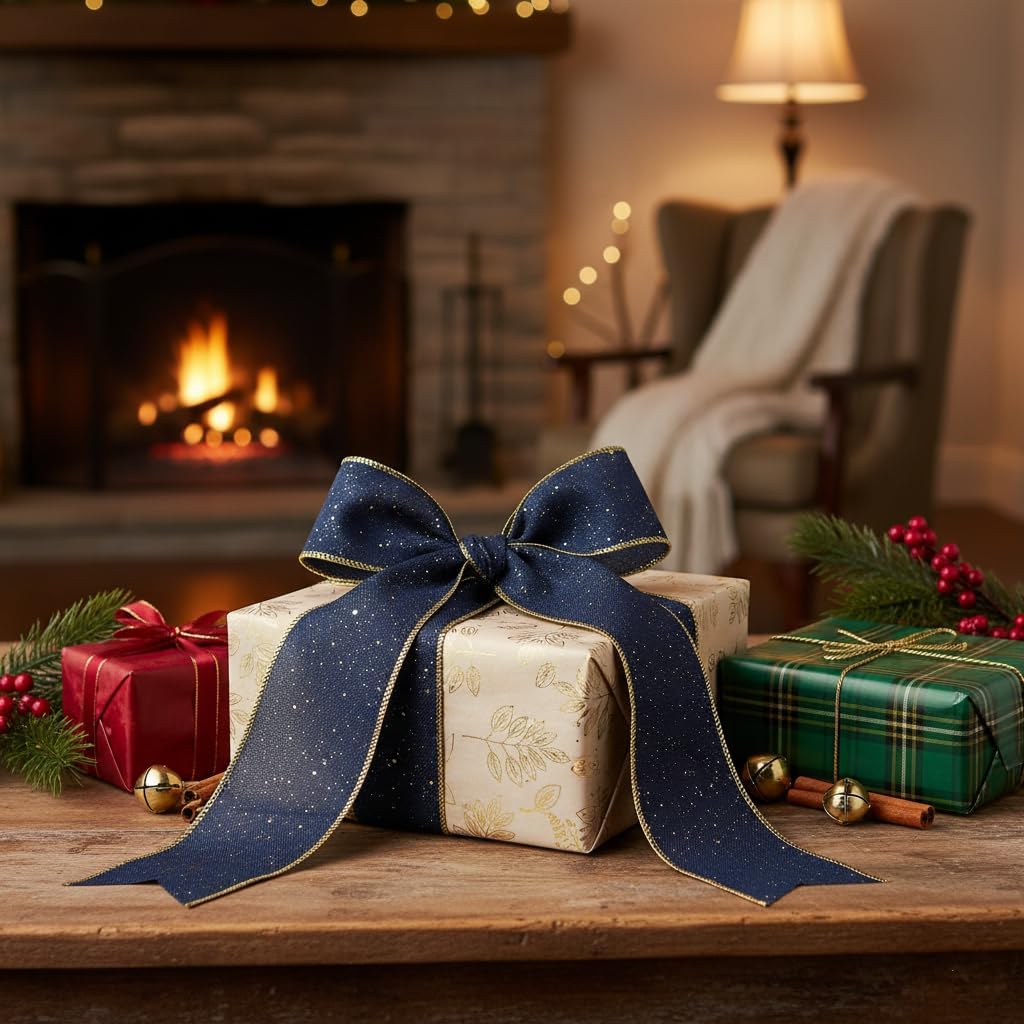 - OCCASION - Our Burlap Fabric Confetti Glitter Wired Ribbon 2.5" Navy color are very easy to match and suitable for birthdays, party decorations, Mother's Day, Valentine's Day, Easter, Independence Day, Halloween, Christmas, New Year's gifts, Wedding decorations, Baby showers etc.
