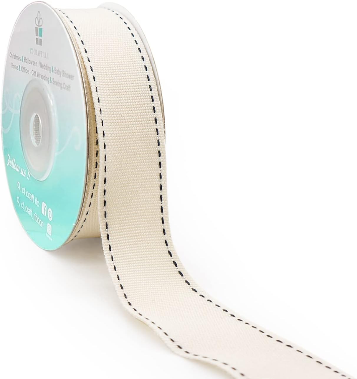 - SIMPLE YET ELEGANT - There is nothing that can accent your Craft better than our Ivory Cotton Black Stitched Ribbon 7/8" for crafts. This ribbon matches any type of gift wrapping paper and the texture not only adds to their premium quality. You'll appreciate the ease and finesse with which these Ivory Cotton Black Stitched Ribbon 7/8" glide through your fingers.