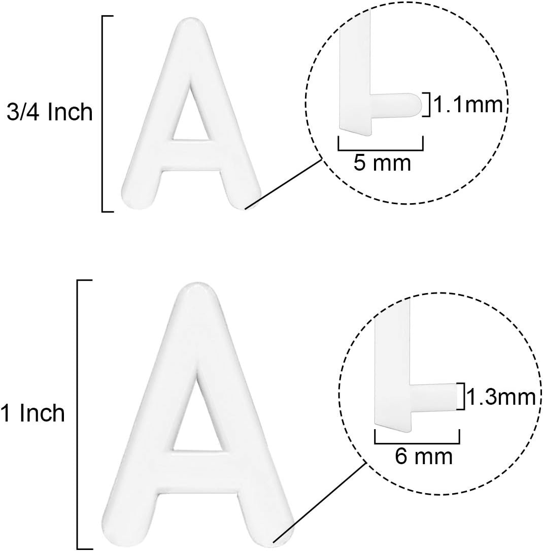 - 3/4 Inch Letters: 304 PCS, Including:A - 14, B - 6, C - 8, D - 8, E - 18, F - 6, G - 6, H - 8, I - 14, J - 4, K - 4, L - 10, M - 8, N - 12, O - 14, P - 8, Q - 4 , R - 12, S - 12, T - 12, U - 8, V - 4, W - 6, X - 4, Y - 6, Z - 4, 0 - 6, 1 - 6, 2 - 4, 3 - 4, 4 - 4, 5 - 4, 6 - 4, 7 - 4, 8 - 4, 9 - 4,Comma - 12, Period - 6, Question Mark - 2, Dash - 2, Ampersand - 2, Dollar - 2, Arrow - 4, Backslash - 2, @ - 2, Hashtag - 2, Exclamatiom Mark - 2.