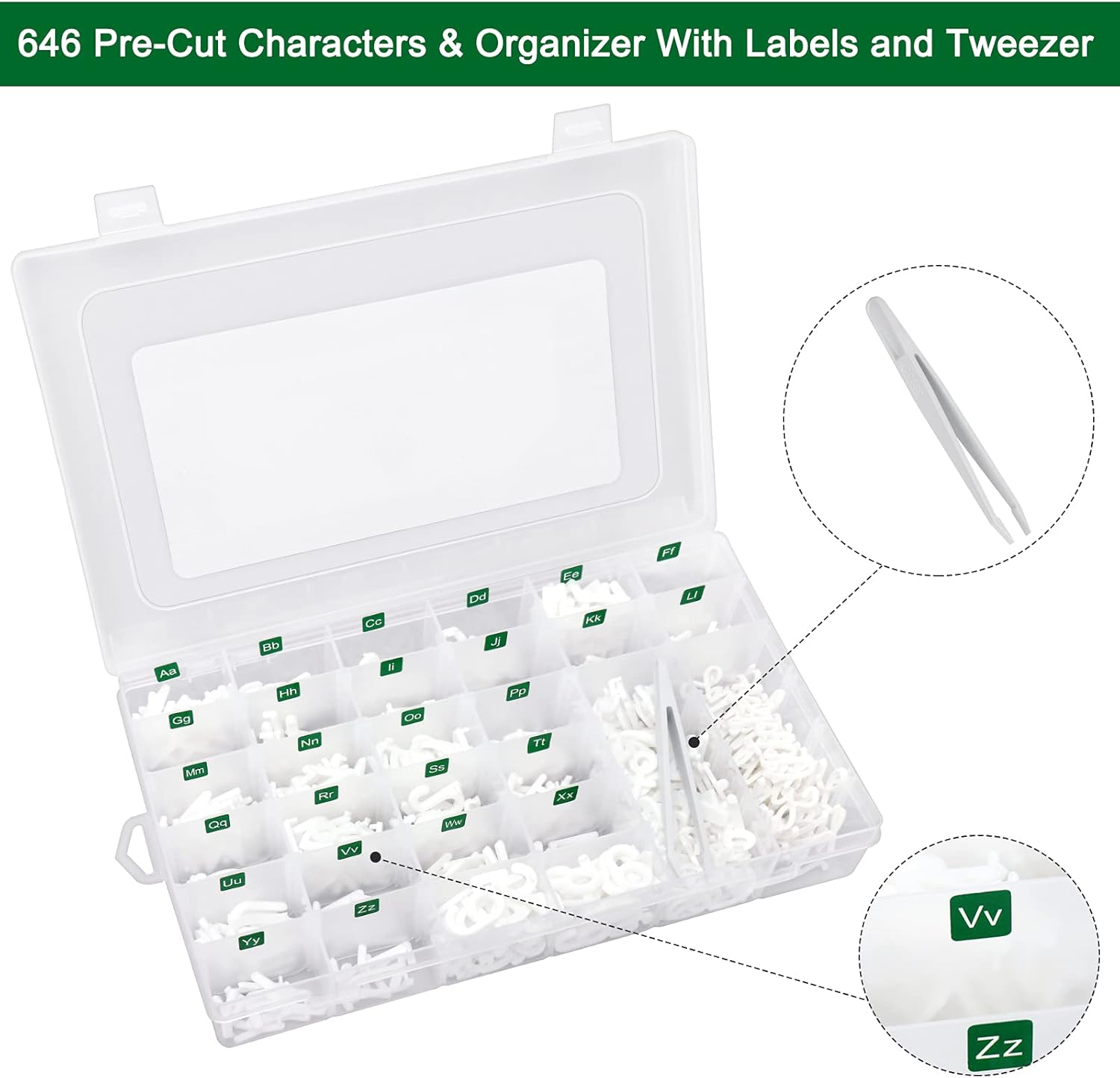 Letter Board Letters Only,646 PRE-Cut Characters (3/4 and 1 Inch,White) with Sorting Tray,Felt Letter Board Letters (Choice B)