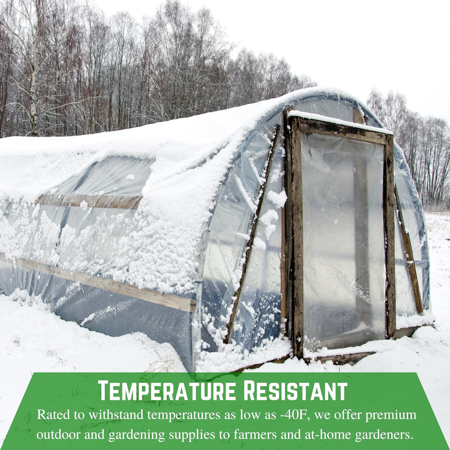 - Temperature Resistant - Rated to withstand temperatures as low as -40F, Farm Plastic Supply aims to offer premium outdoor and gardening supplies to farmers and at-home gardeners alike. Our clear sheet vinyl is a premium product for gardeners that want quality material.