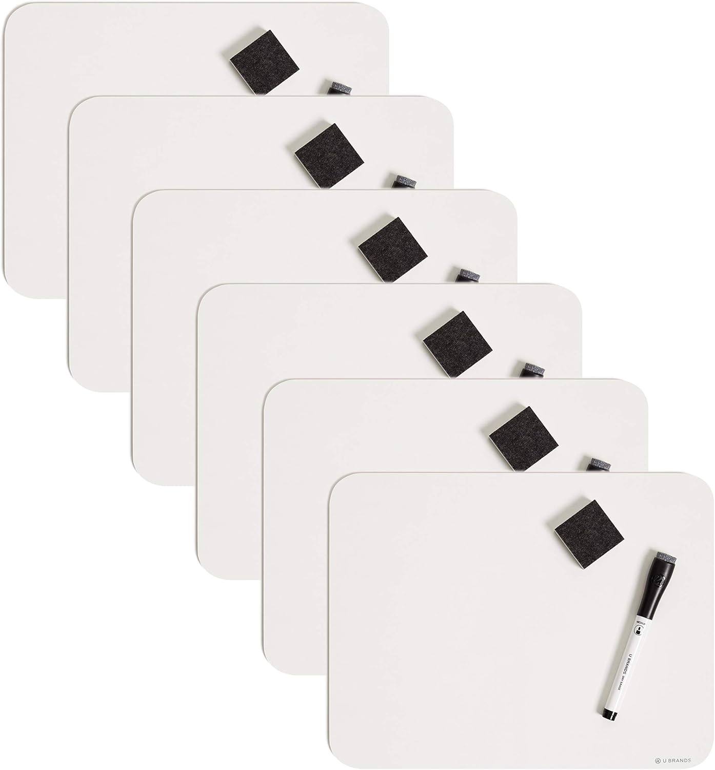 U Brands Dry Erase Lap Board Set, 12” x 9”, Small Whiteboard, Includes 6 Markers and 6 Erasers, 6 Count