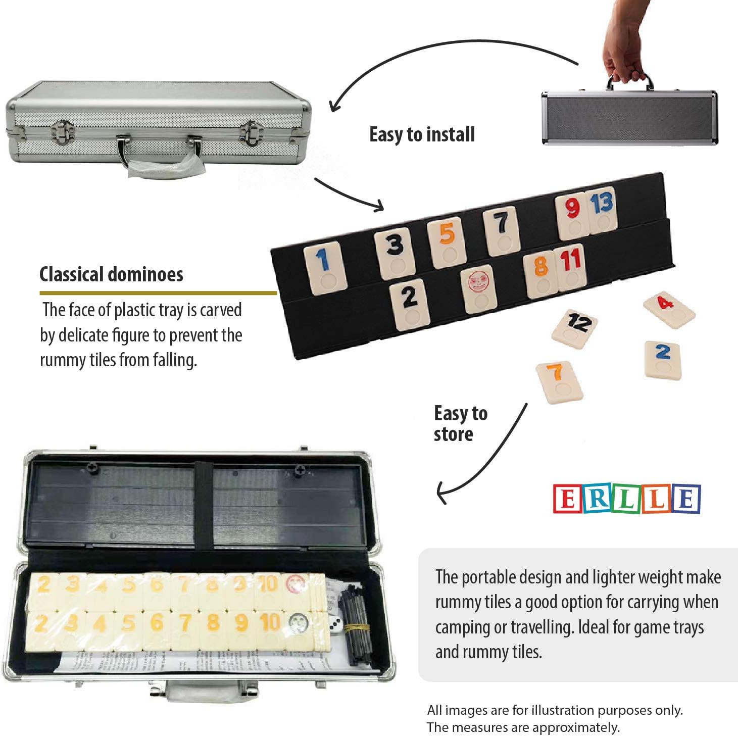 - Lightweight Aluminum Case for Travel & Storage Designed for on-the-go fun! The sleek aluminum carrying case protects your tiles and trays, making this the ultimate travel rummy set for camping, picnics, park days, school clubs, and more.