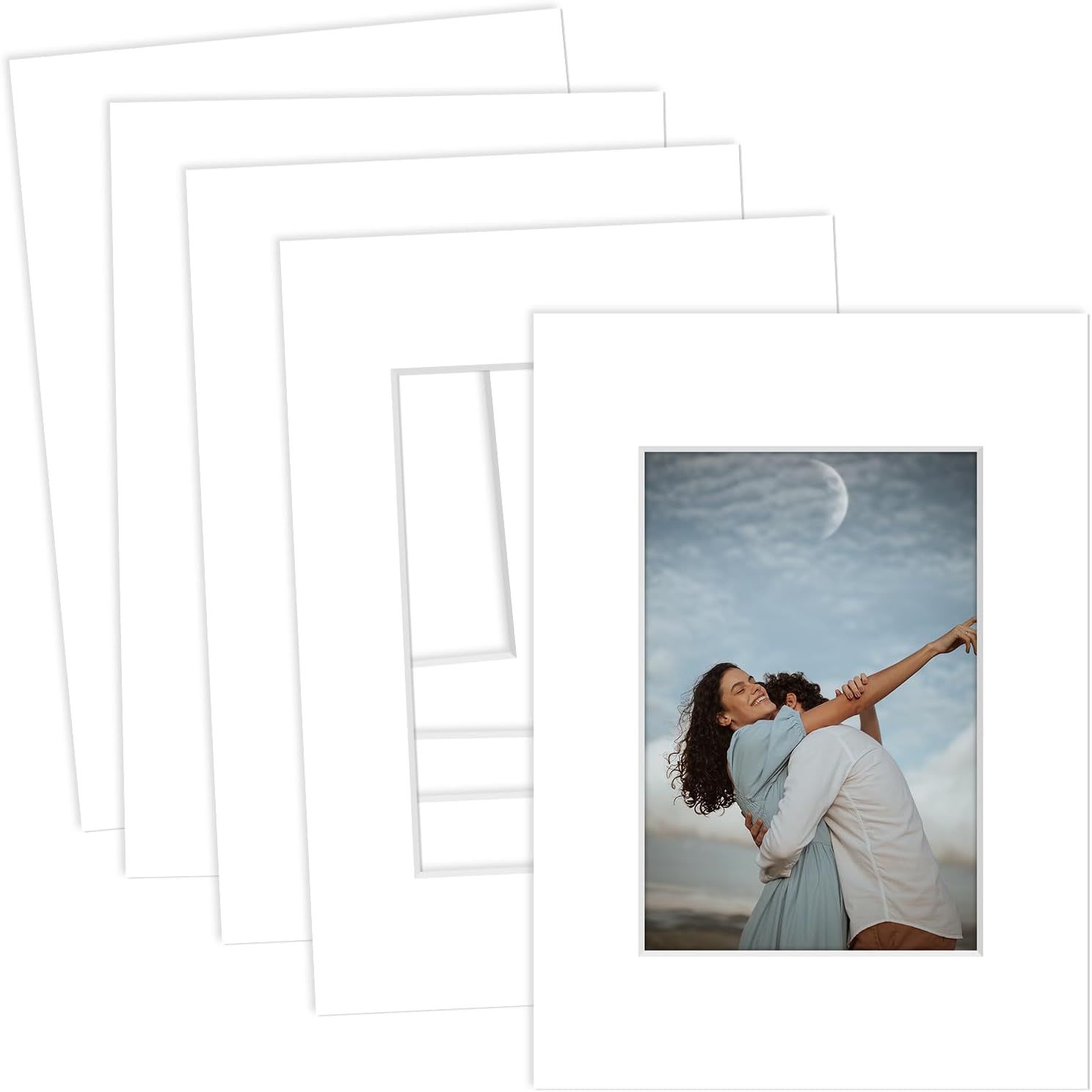 MBC Mat Board Center, 5 Pack 5x7 for 3.5x5 White Picture Mats Frame Mattes, Bevel Cut, Acid Free, 4-ply Thickness
