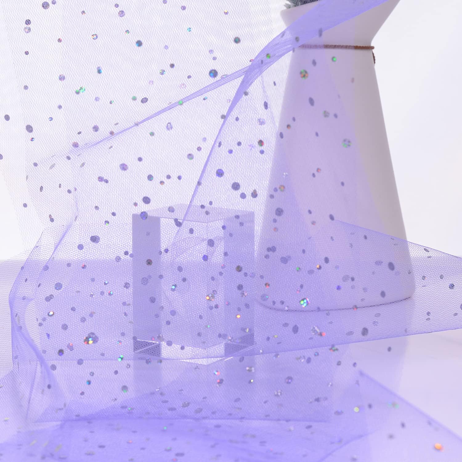 Glitter Tulle Rolls, 6' by 50 Yards (150FT) Sequin Tulle Netting Fabric for Tutu Skirts Sewing Birthday Wedding Party Decoration (Purple)