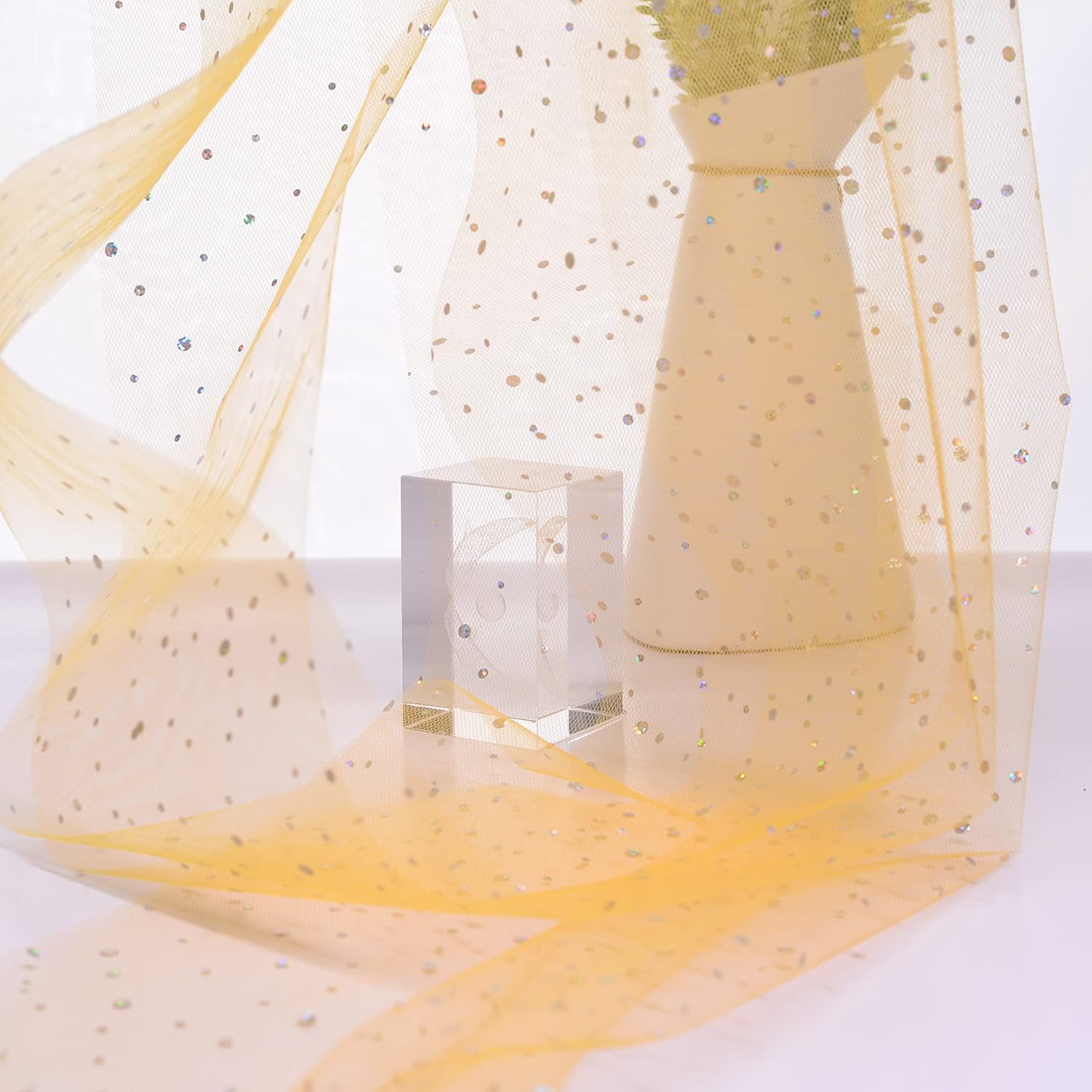 Glitter Tulle Rolls, 6” by 50 Yards (150FT) Sequin Tule Netting Fabric Tulle for Tutu Skirts Sewing Birthday Wedding Party Decoration (Gold)